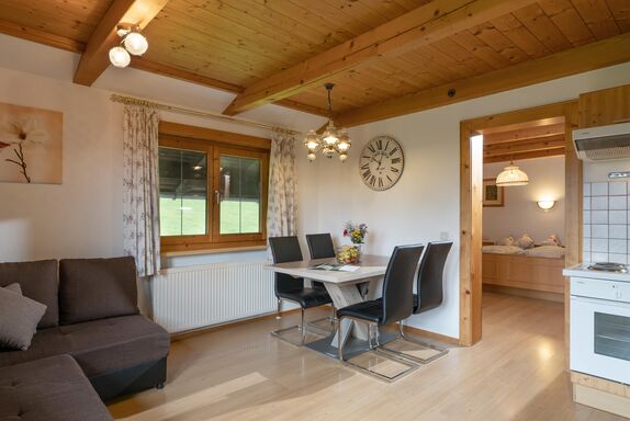 Der im Tiroler Stil erbaute Zasserlhof liegt in ruhiger Lage, ca. 5 km vom Ortszentrum von Kössen entfernt auf einer Anhöhe mit toller Aussicht auf die umliegenden Berge des Kaiserwinkls. Das Skigebiet Hochkössen (Unterberghorn) und der Walchse als wärmster Badesee Tirols sind ebenfalls nur 5 km entfernt. Die Langlaufloipe liegt in 400 m Entfernung. Der bewirtschaftete Bauernhof ist ein idealer Platz für Familien und ruhesuchende Urlauber. 3 gemütlich eingerichtete 2-Zimmer-Appartements stehen bereit für Ihren Urlaub. Inkl. KAISERWINKL Schwimmcard ( unsere Gäste haben freien Eintritt im Ostufer und Seepromenade in Walchsee, Waldschwimmbad Kössen und Freibad Reit im Winkl).