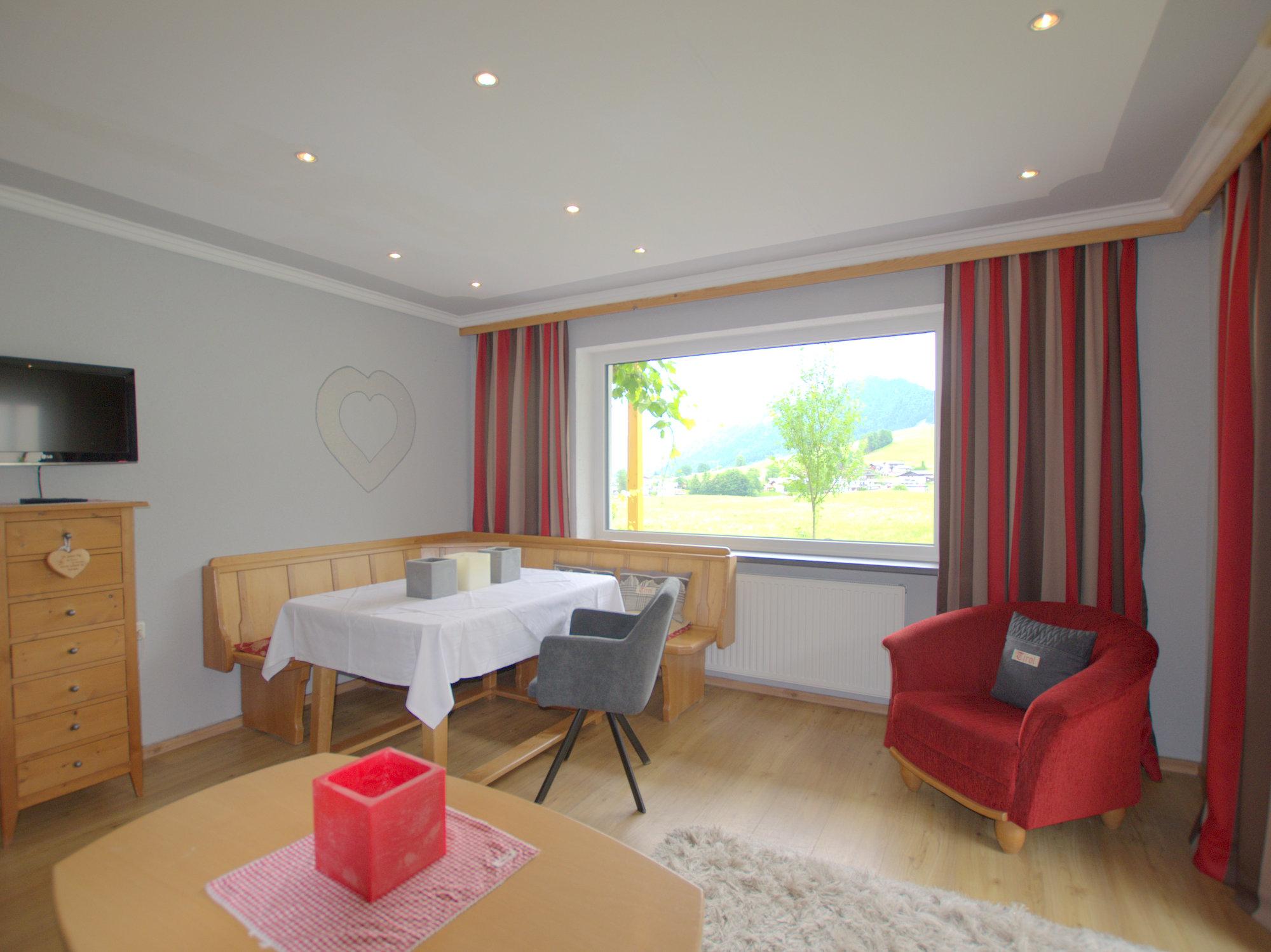 Die Appartments sind eingrichtet im Tiroler Stil und strahlen warme Gemütlichkeit aus. Zimmer mit Doppelbett und Zusatzbett, Bad mit Dusche/WC, Kochnische mit Kaffeemaschine, SAT - Fernseher, Bettwäsche und Handtücher