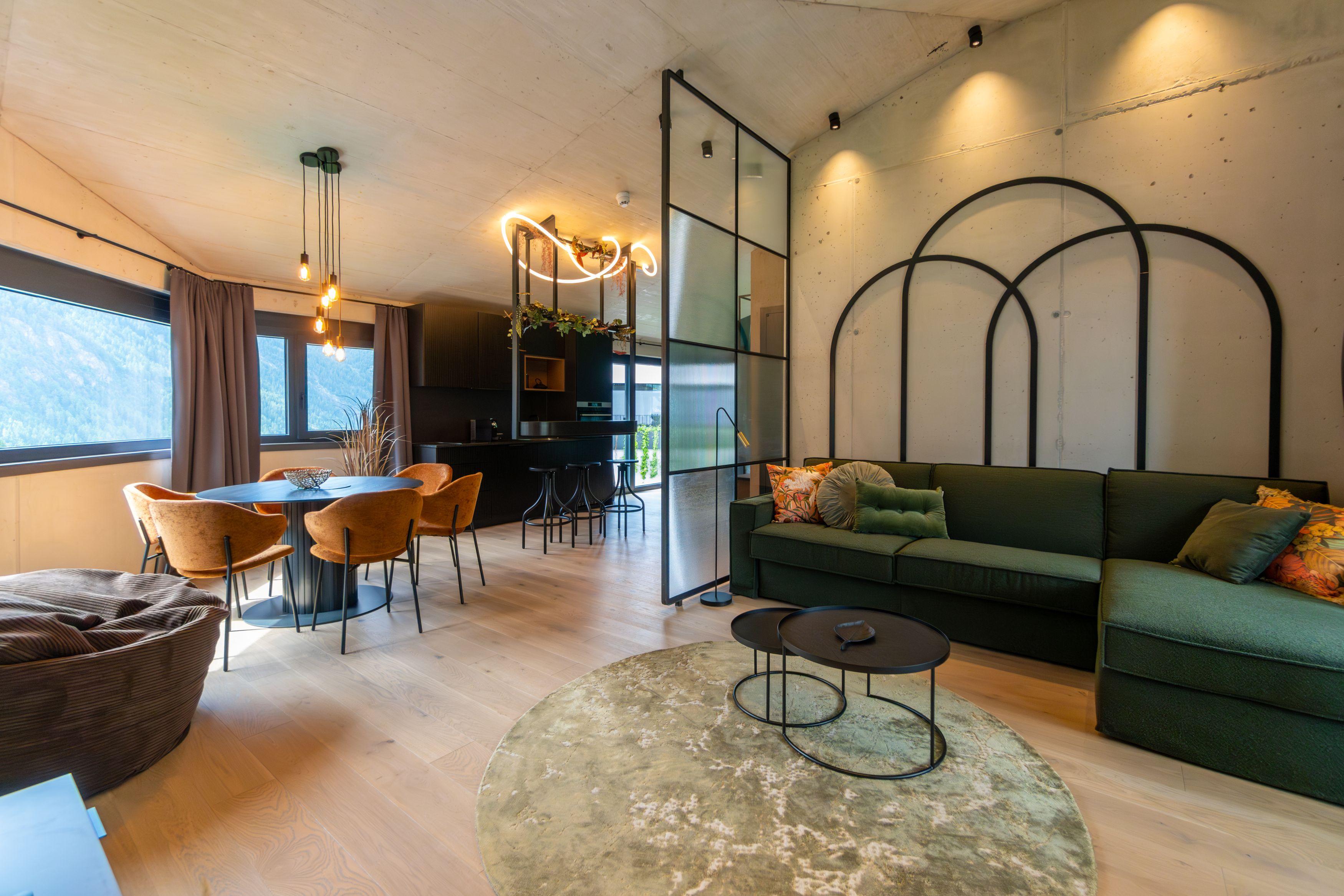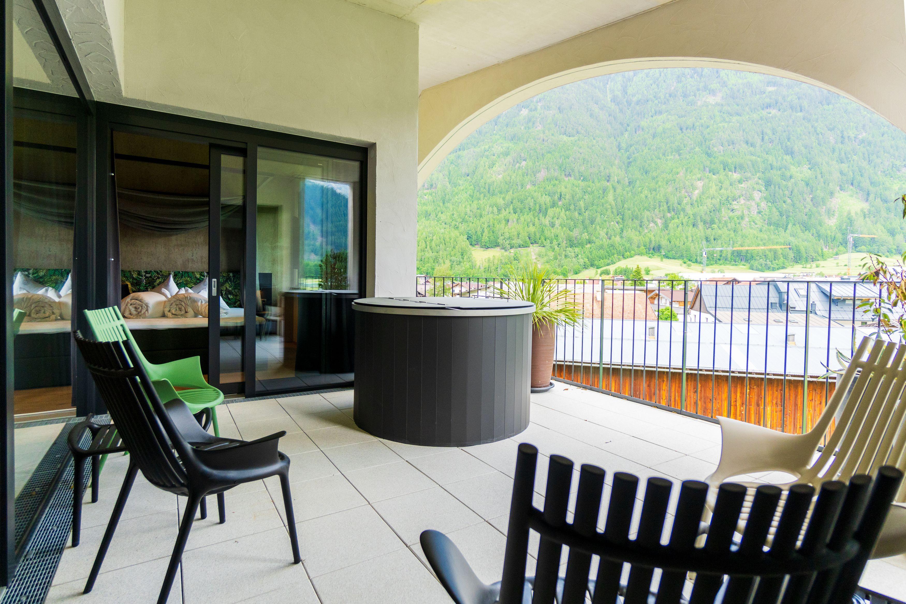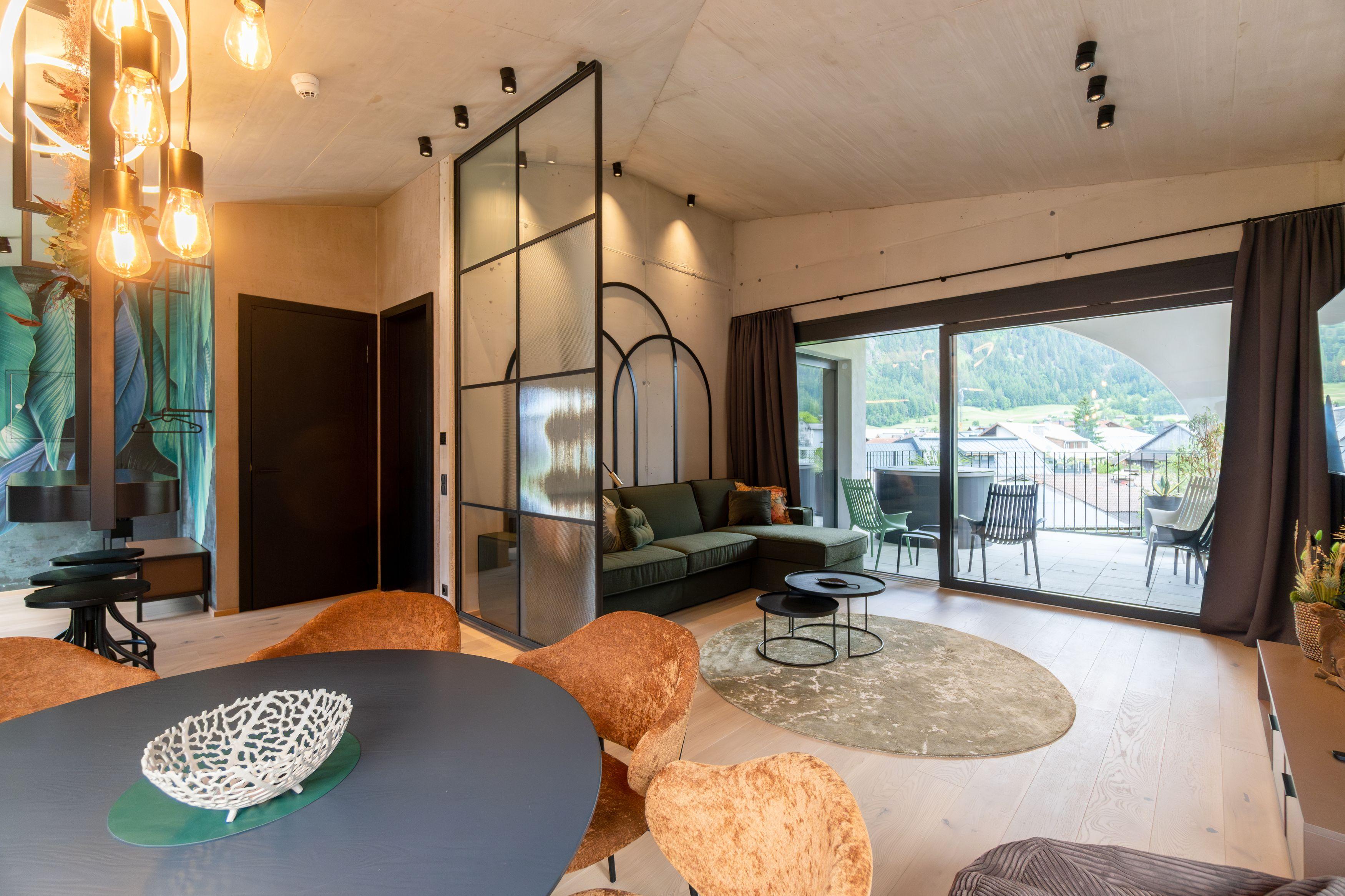 Ganz oben im 4. Stock erwartet dich unser exklusives Penthouse mit zwei Schlafzimmern, zwei Bädern und einer großzügigen Dachterrasse. Das absolute Highlight: dein privater Hot Pot mit atemberaubendem Blick auf die Dreitausender. Für bis zu sechs Personen – Luxus und Freiheit ohne Kompromisse.