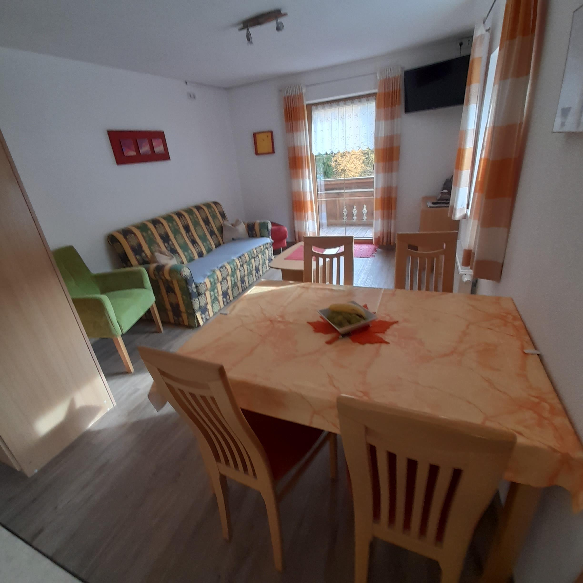 Unser Appartement erstreckt sich über 70 m² und besteht aus 2 Doppelzimmer und 2 Badezimmer(1x Dusche/WC und 1x Dusche und sep. WC), Wohnküche mit komplett ausgestatteter Küchenzeile mit Geschirrspüler, Kaffeemaschine, Wasserkocher, 4-Plattenherd mit Backrohr sowie einer Essecke, Flat-TV, Radio und einer Couch Zustellbett für Kleinkinder auf Anfrage vorhanden. Balkon mit freier Aussicht.