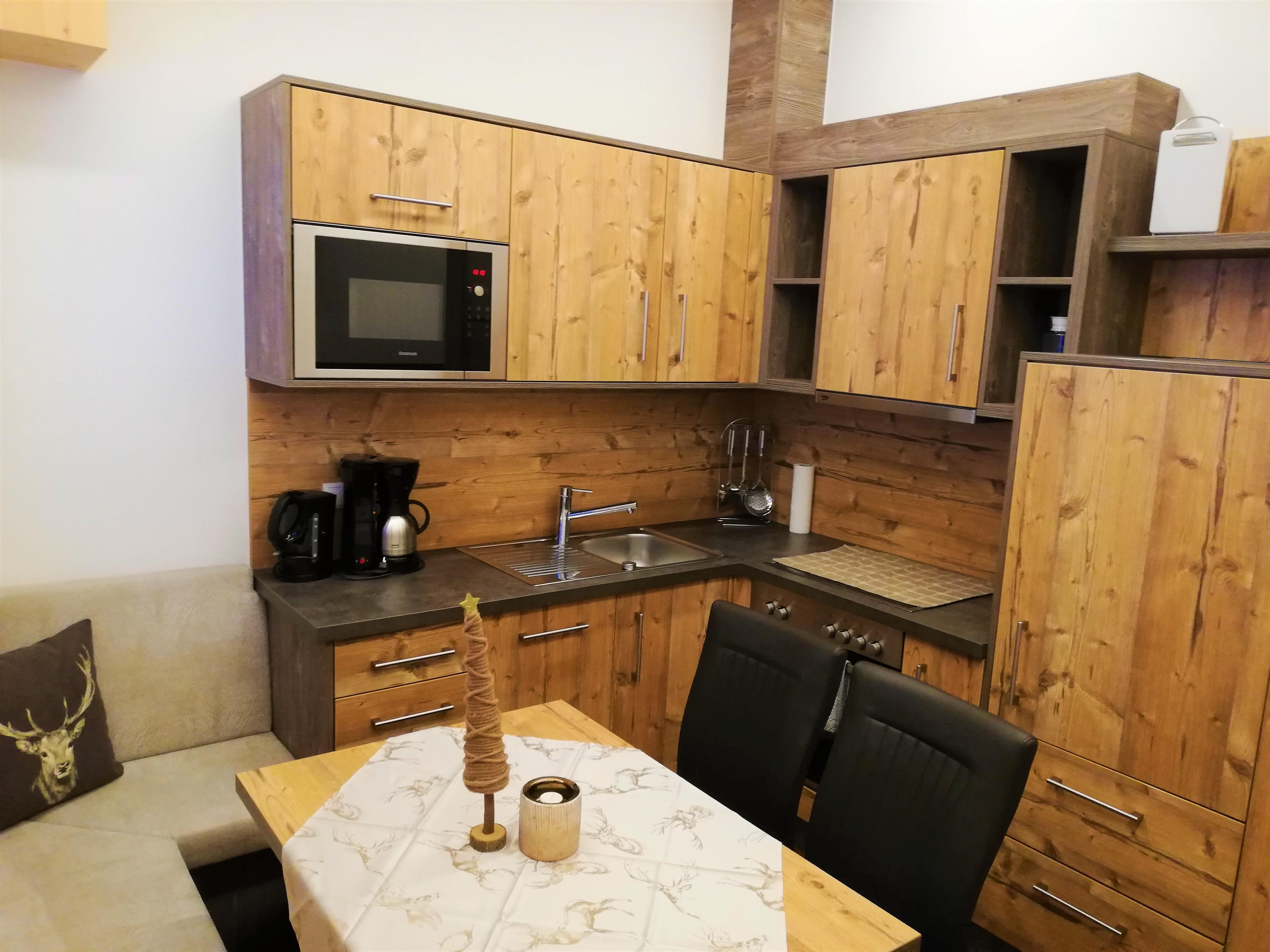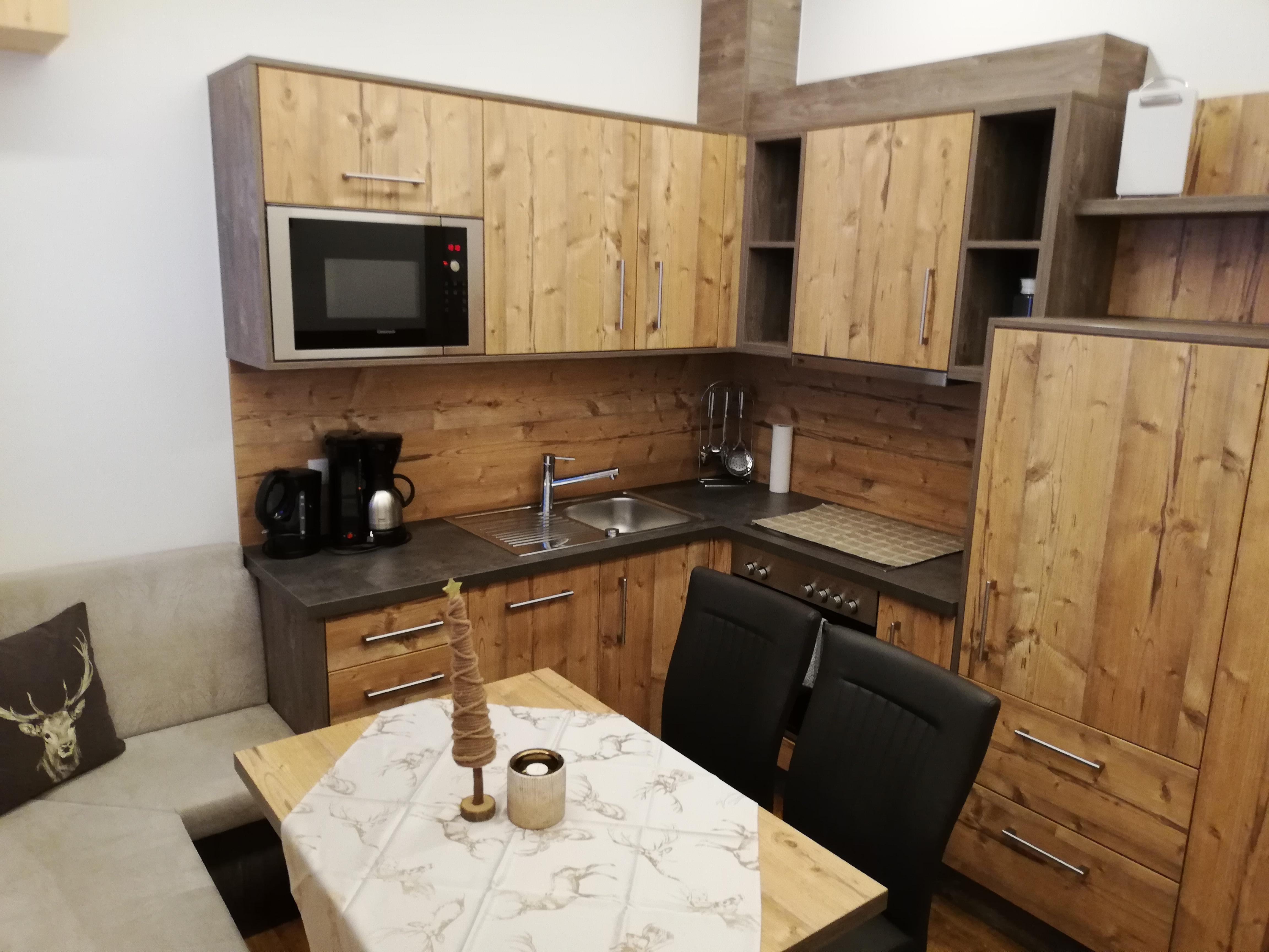 Das Appartement verfügt über eine voll ausgestattete Wohnküche mit Kühl-/Gefrierschrank, Wasserkocher, 4-Platten Cerankochfeld, Backofen, Mikrowelle, Geschirrspüler und kompletter Geschirr- und Kochausstattung mit gemütlicher Essecke und Flat-TV. 2 Doppelzimmer mit Flat-TV und ein Badezimmer mit Dusche/WC und Haarföhn. Selbst regulierbare Fußbodenheizung und Schuhtrockner direkt im Appartement. Größe 34 - 39 m². Auf der Terrasse genießen Sie einen traumhaften Ausblick!