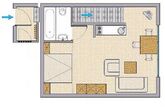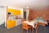 Appartement für 2–4 Personen (ca. 37 m²):Vorraum mit Garderobe, Wohnschlafzimmer mit Doppelbett und Doppelcouch, Telefon, Kabel-TV mit Radio, Safe, Küchenblock (2 Elektroplatten, Kühlschrank, Geschirrspüler, Mikrowelle, Wasserkocher, Kaffeemaschine uvm.). Badezimmer mit Wanne, WC und Fön.
