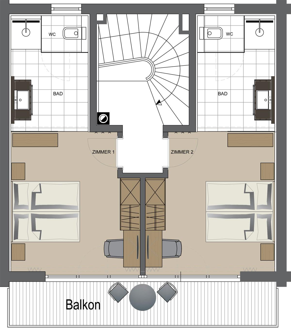 Chalet Fundusfeiler (ca. 150 m²) ausgestattet mit hochwertigen, heimischen Materialen. Das Chalet besteht aus 2 Doppelzimmern mit Boxspringbetten und Balkon, 1 Doppelzimmer mit Boxspringbetten, 3 Badezimmern mit Dusche/WC, 1 WC separat und einer vollausgestatteten Wohnküche sowie einer Kochecke mit Essbar im 2. Obergeschoss. Unsere private Sauna verspricht unvergessliche Stunden.