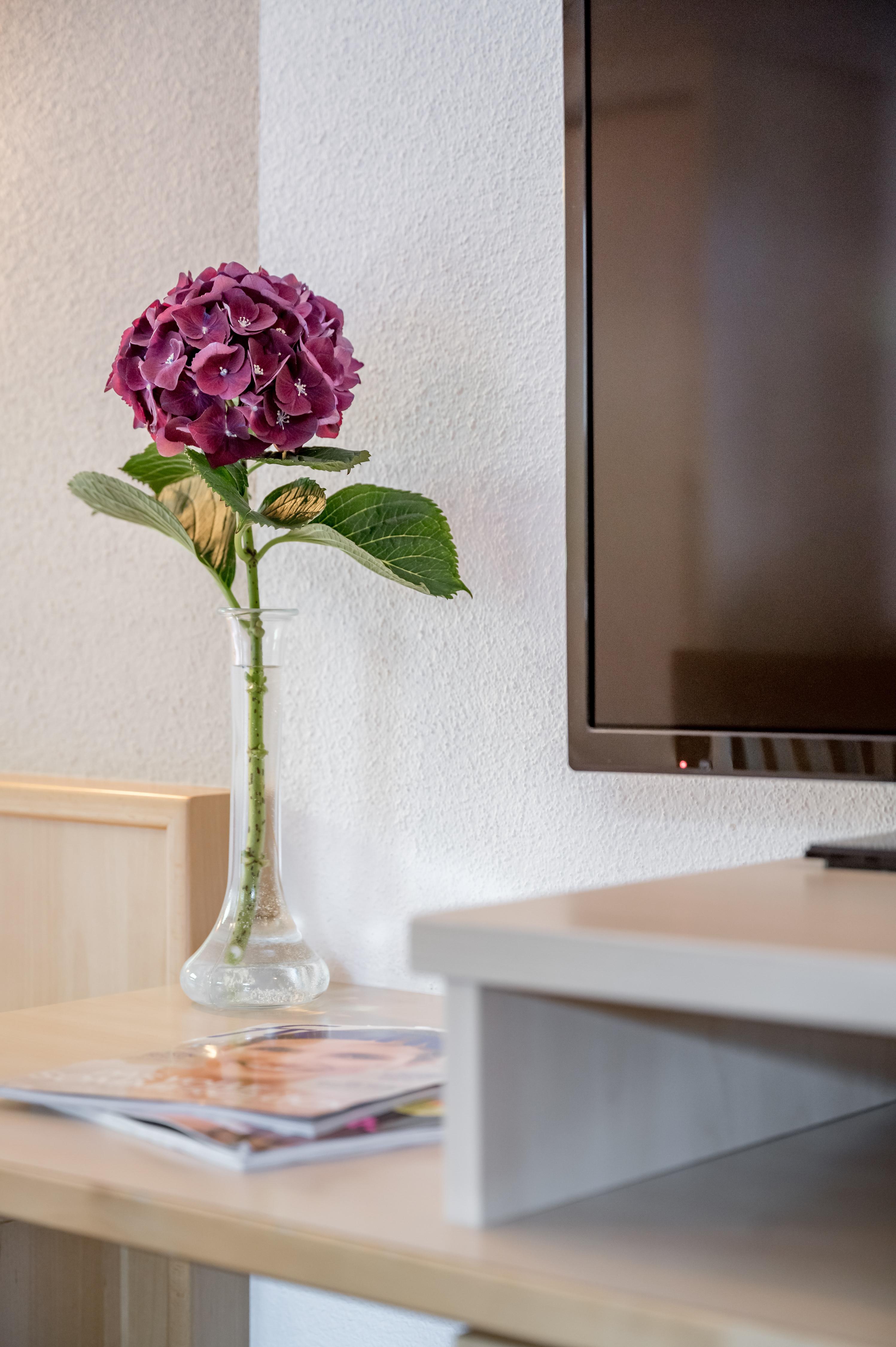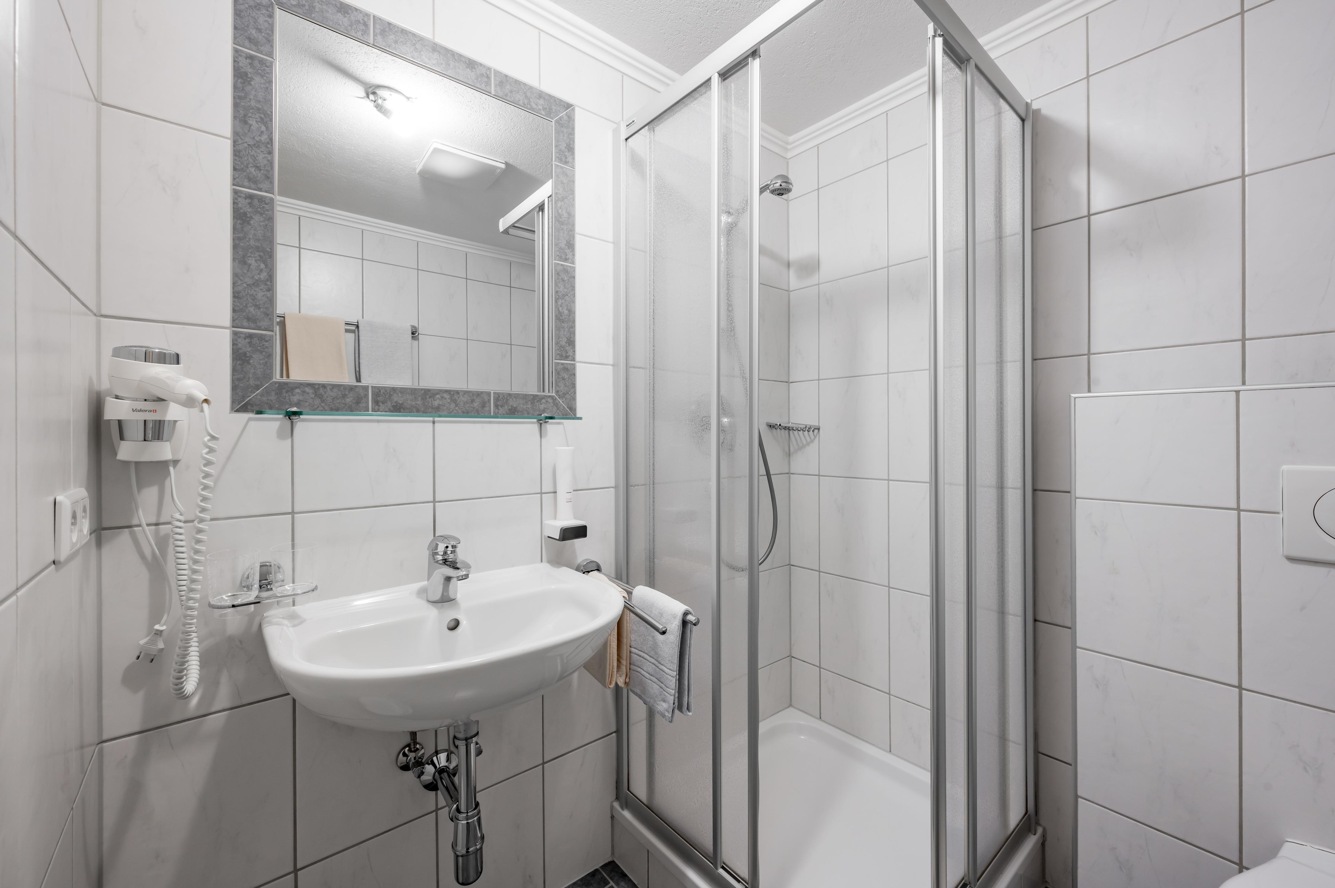 Gemütliches Doppelzimmer mit ca. 23 m² mit Dusche/WC, Sat-TV, Minibar und Balkon.
