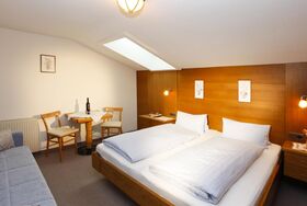 Einfach ausgestattetes Appartement im 2. Stock mit voll ausgestattete Wohnküche (Geschirrspüler, Herd mit 4 Kochplatten, Backrohr, Kühlschrank...), mit Essecke, Flat-TV, W-LAN gegen Gebühr, 2 getrennte Doppelzimmer, Dusche und Badewanne, getrenntes WC und Balkon. Appartementgröße: ca. 60 m².