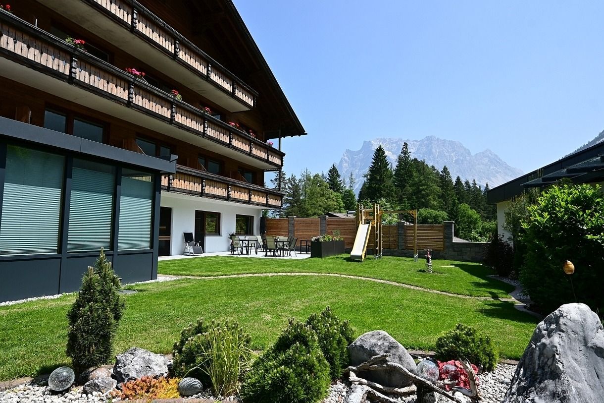 Unsere Familienpension bietet Ihnen gemütliche Apartments und Doppelzimmer mit Frühstück, einen modernen Wellnessbereich sowie grandiosen Ausblick auf die Zugspitze und unsere Bergwelt.
