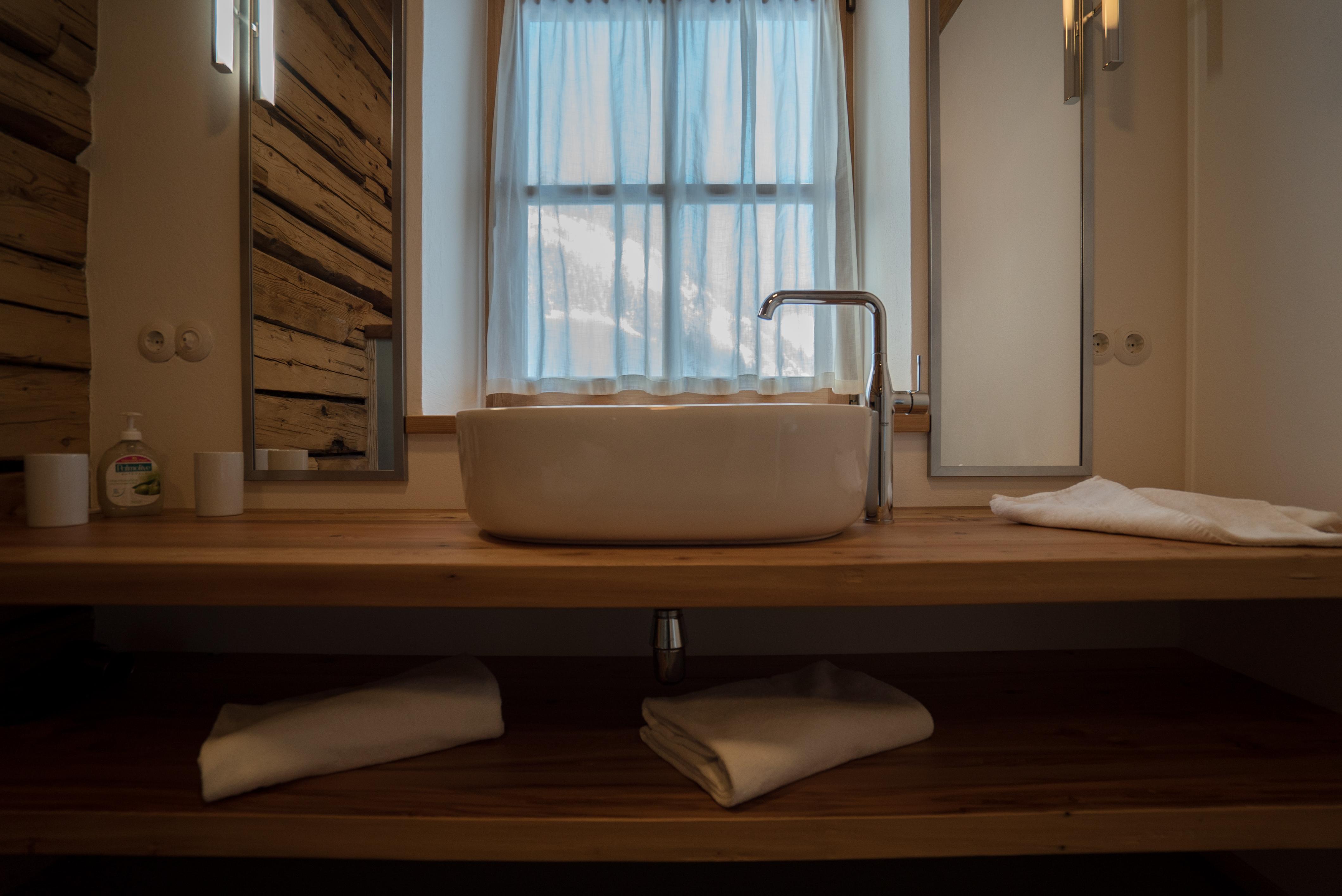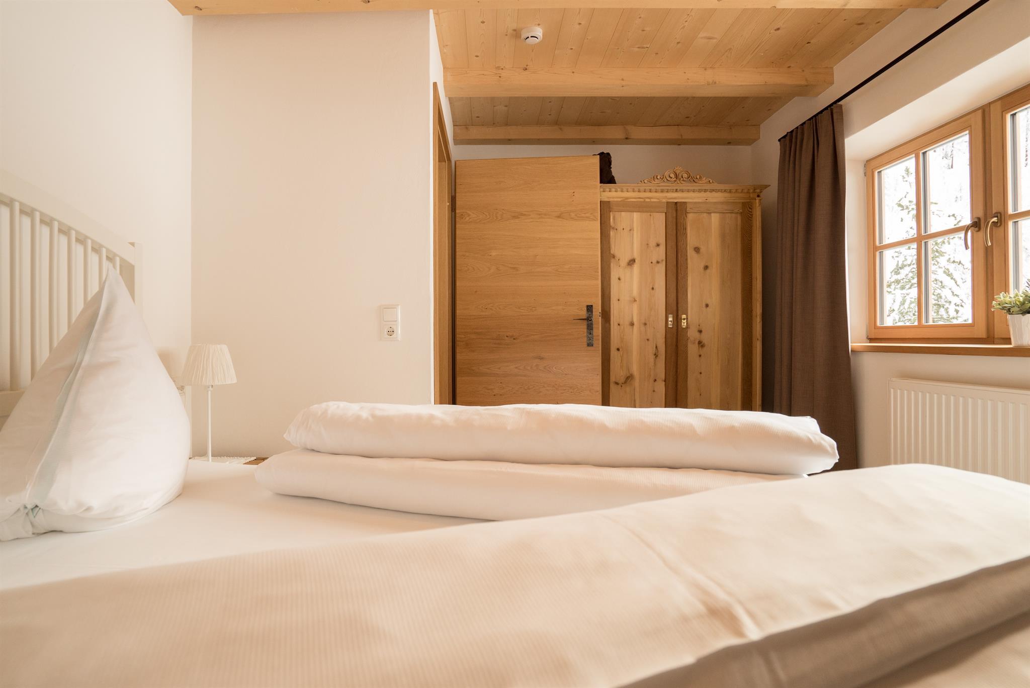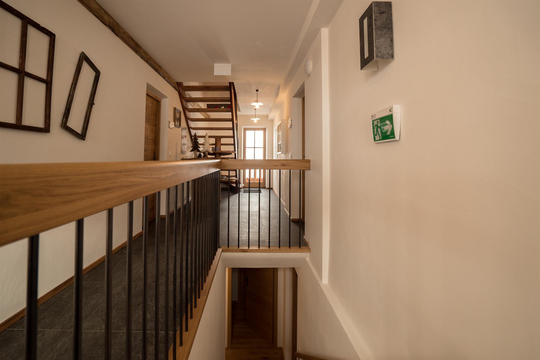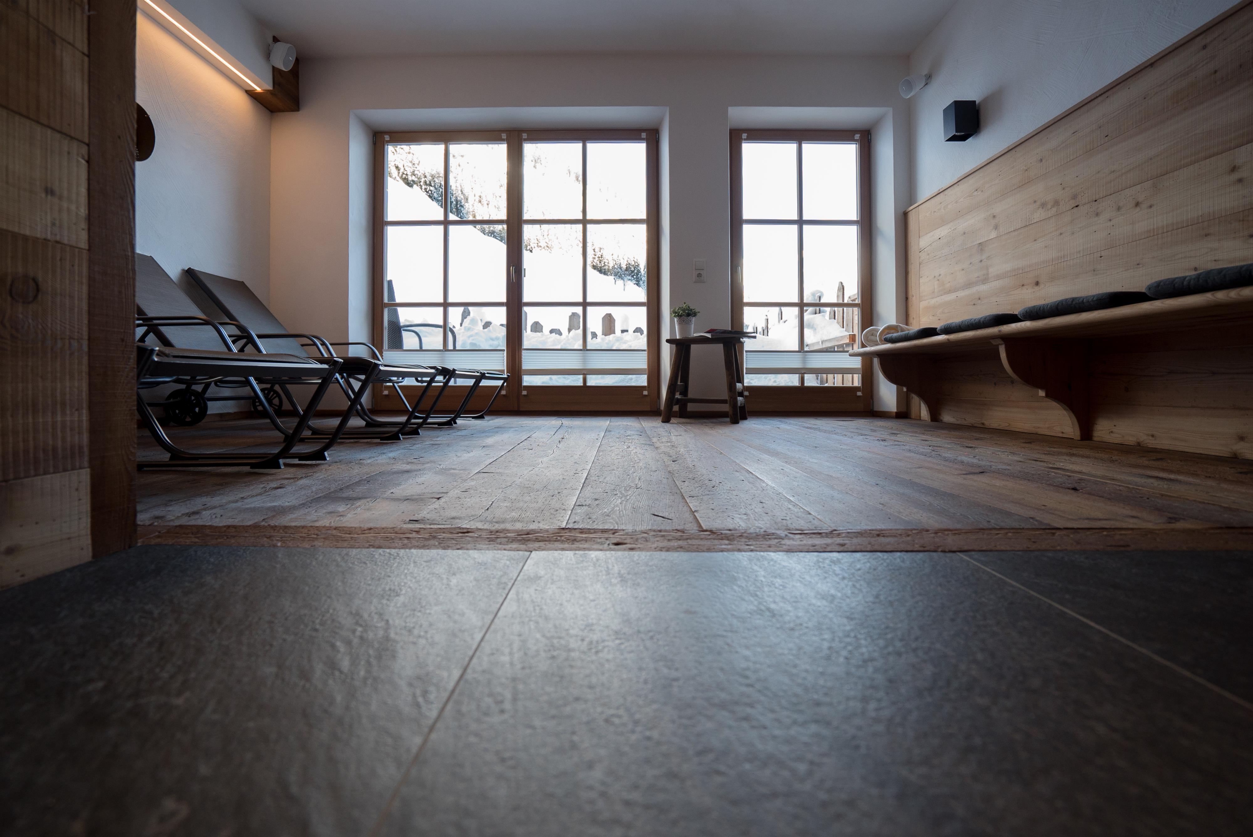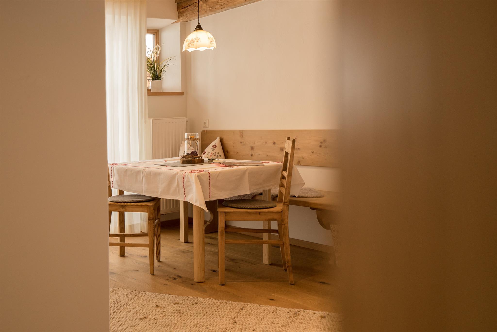 Unterstadel liegt im Hangbereich. Moderne und traditionelle Möbelstücke wechseln sich hier ab und verleihen der Wohnung einen gemütlichen Charme. Die Wohnung besitzt eine großzügige Terrasse mit Panoramablick sowohl ins Tal als auch zu den Gipfeln.