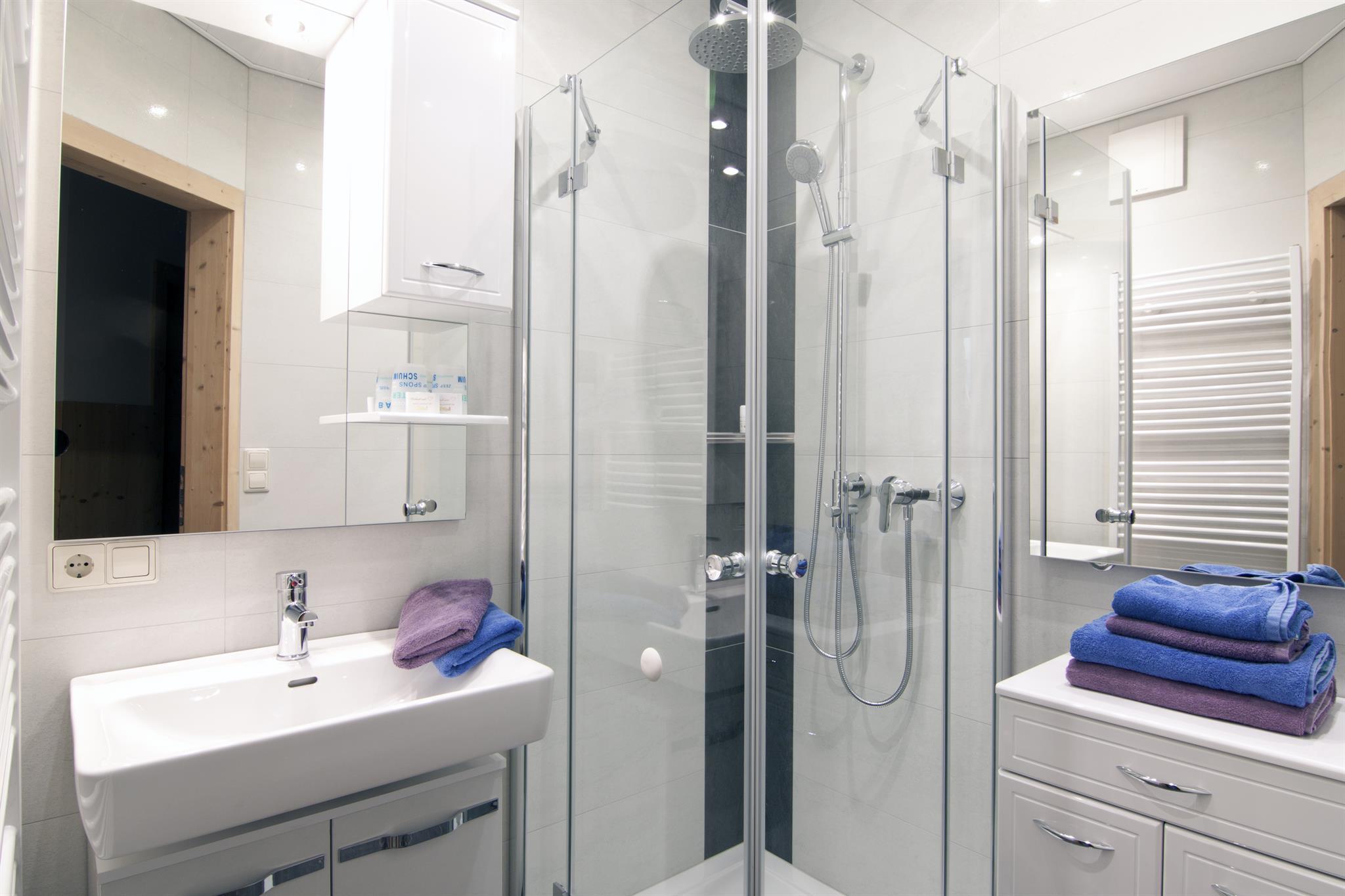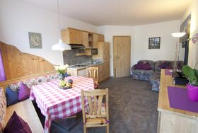 Das Apartment verfügt über ein Elternschlafzimmer, ein Kinderschlafzimmer, ein Wohnschlafzimmer mit voll ausgestatteter Küche, Badezimmer mit Dusche und separatem WC. Traumhaft ist auch unser Panoramablick vom Dachgarten mit Liegewiese.