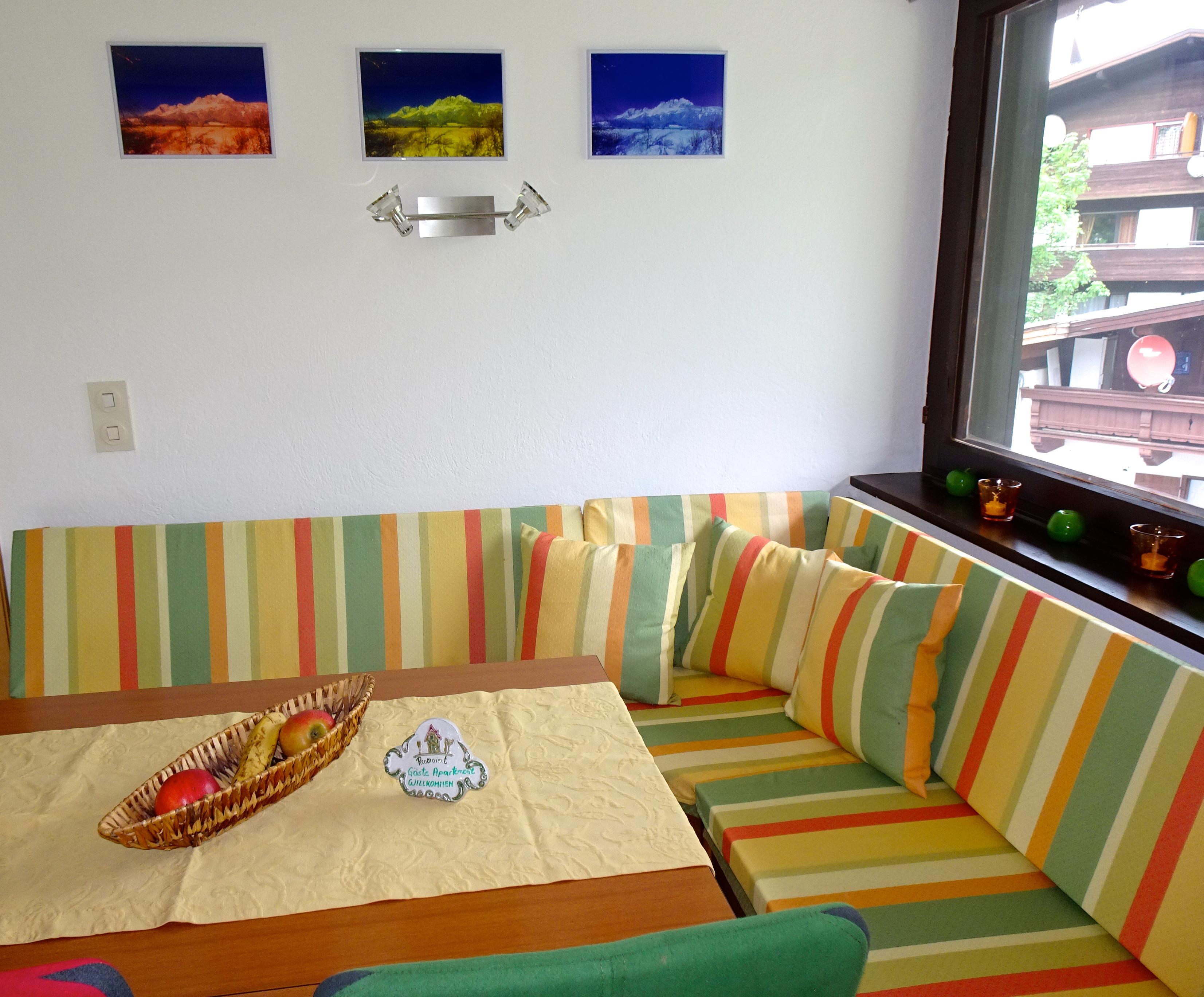 Das Haus liegt in sonniger,ruhiger TOP-LAGE direkt am Fuße des Kitzbüheler Horns. Skifahren bis zur Haustüre. 4Minuten zur Bergbahn/Skischule/Sessellift. Das Zentrum ist zu Fuss leicht erreichbar! Mein 60 m2 WOHLFÜHL-APPARTEMENT(Nichtraucher) bietet Ihnen Wohlfühl Komfort in liebevoller Gestaltung. 2022 wurde neu ausgemalt/renoviert & sowie eine neue moderne Einrichtung. Das SZ hat ein Leder Doppelbett mit 2 neuen FK Matratze & Bettenroste. Ein Sofa mit Schlaffunktion f. 2 Kinder ist im SZ. Im WZ ist eine neue Sitz/Ess/Ecke (08/22) sowie ein Wandbett. FLAT TV,Radio/CD, Relaxliege /2 Balkone Tages & Abendsonne & laden Sie zum Relaxen & Geniessen ein. Das Bad/WC sind getrennt, die Küche ist klein aber gut ausgestattet. Kaffe/Filter/Tee steht zu Ihrer Verfügung! In meinem Kellerabteil sind Ihre Fahrräder sowie Ihre Skiausrüstung gut aufgehoben & safe.