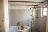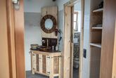 Im Ferienhaus befindet sich eine Küchenzeile mit anschließendem Wohn-Essbereich. Im Wohnbereich befindet sich eine Schlafcouch mit Fernseher. Das Badezimmer ist mit Badewanne und Dusche ausgestattet. Das WC ist getrennt vom Badezimmer. Ein Doppelbett befindet sich im Schlafzimmer gleich direkt neben dem Wohnbereich und eines befindet sich oben auf der Galerie. Eine weitere Sitzmöglichkeit, zum Beispiel zum Frühstücken, befindet sich auf der großen Holzterrasse. Direkt an das Ferienhaus schließt ein Carport an, welches Abstellmöglichkeit für PKW und Fahrräder bietet.
