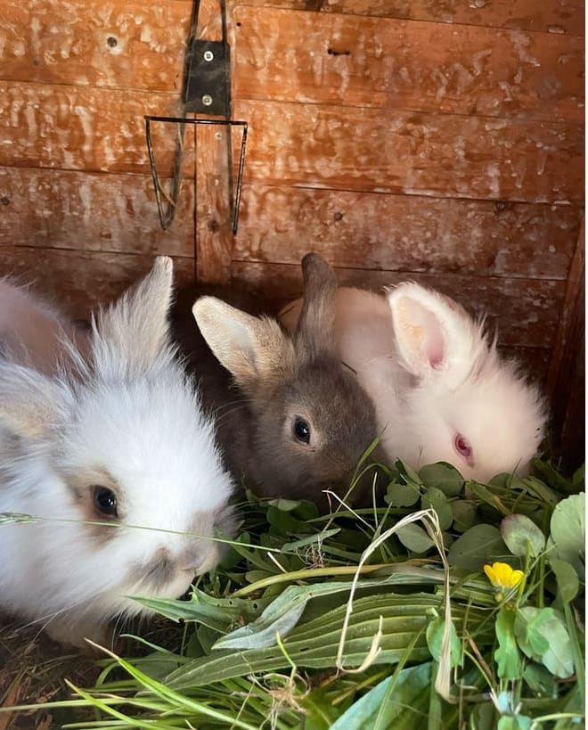 Der Stall des Bauernhofs liegt ca. 400 m vom Haus entfernt und kann jederzeit besucht werden. Gern können Sie nach Rücksprache bei der Stallarbeit mithelfen. Im Garten steht auch ein Kleintier-Freigehege und unsere Hasen und Meerschweinchen freuen sich über Streicheleinheiten.