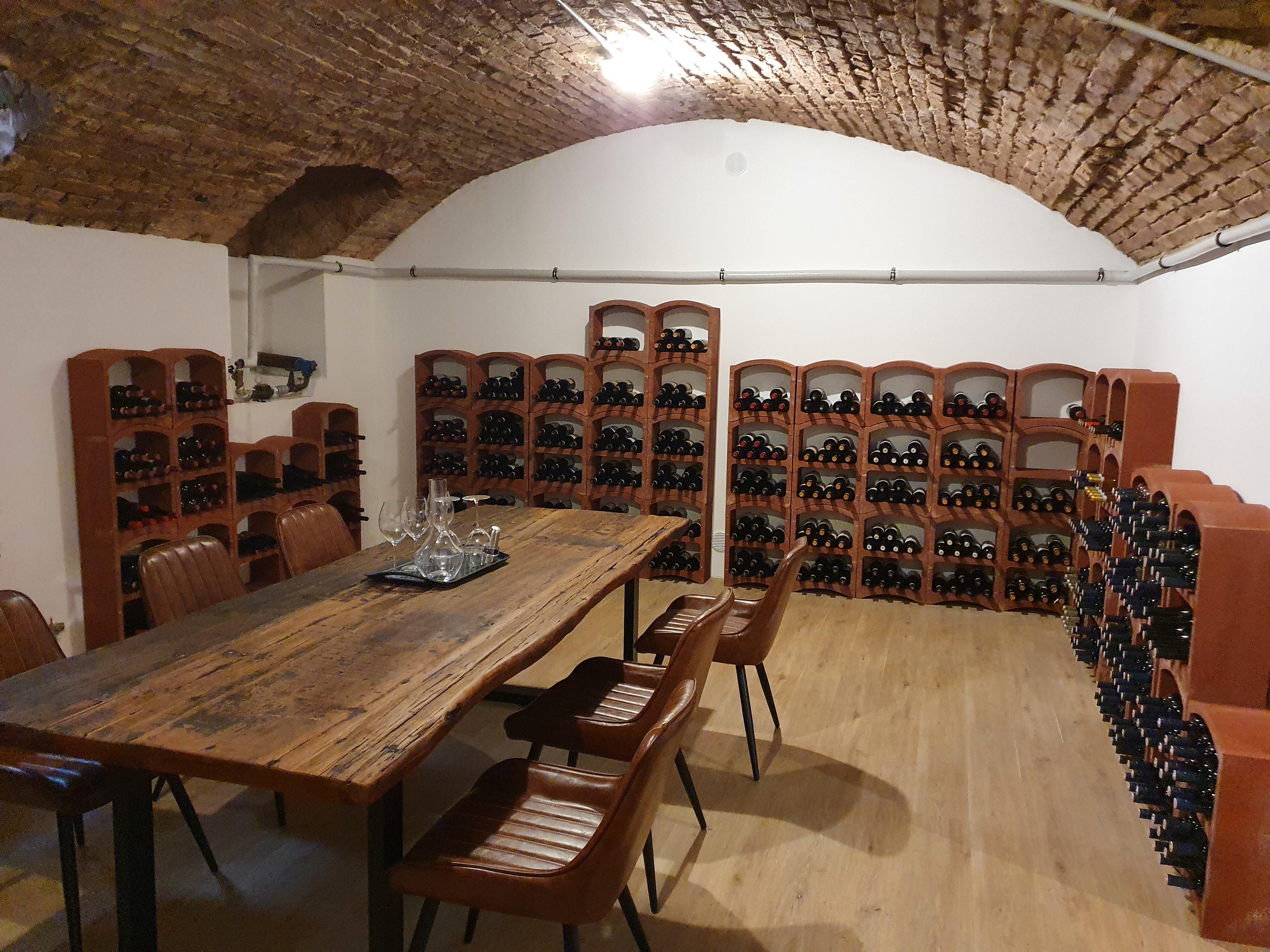 Großer Gastgarten und sehr schöne Vinothek.