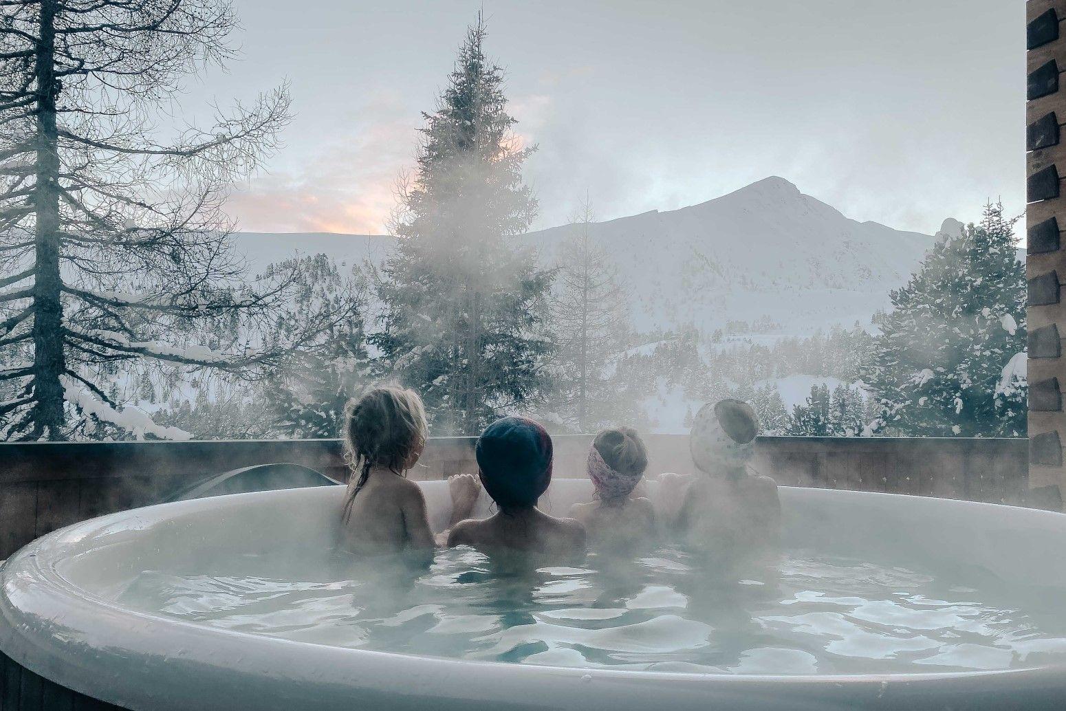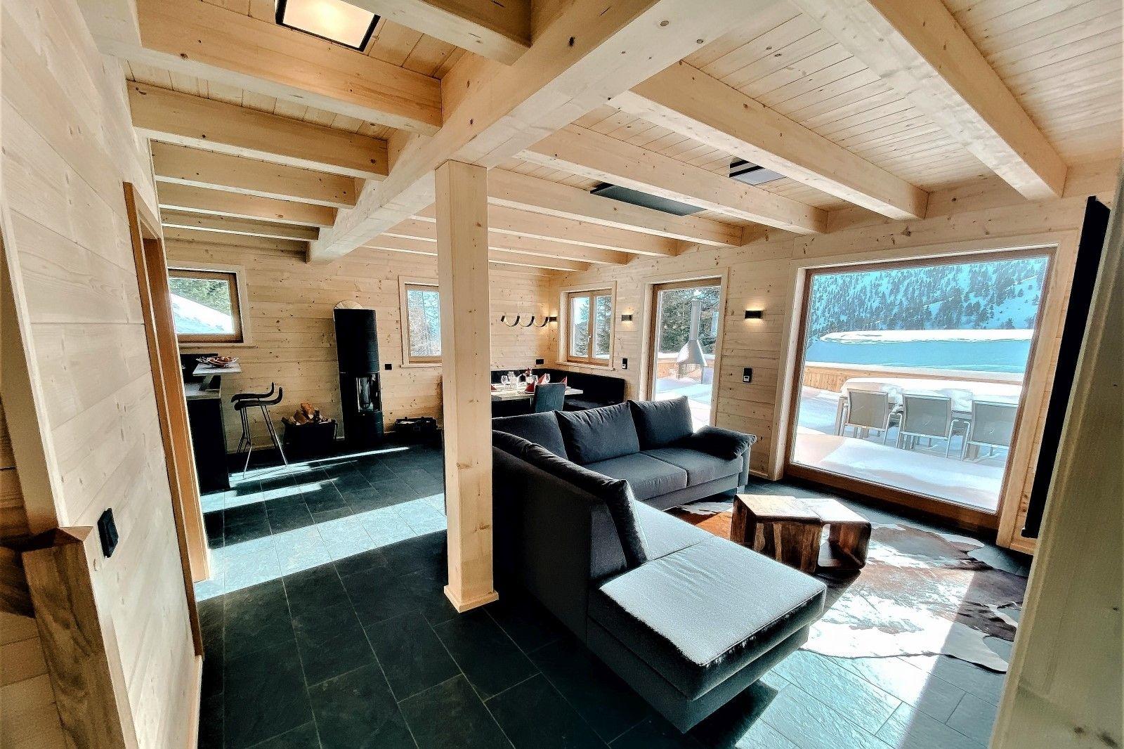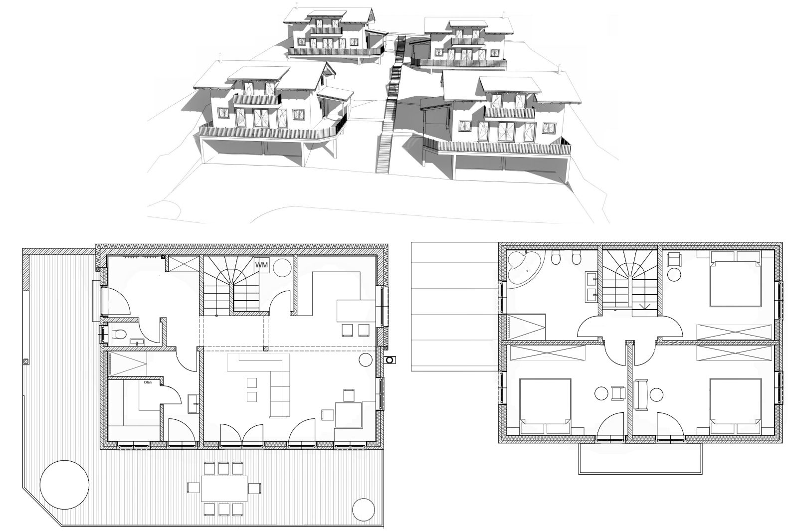 Unsere Luxuschalets BergwinterDie 2021 neu errichteten 4 Luxuschalets „Bergwinter“ bieten mit 145m² Wohnfläche zzgl. der Terrassen und Balkone über 2 Wohnebenen reichlich Platz für Erholung und die ganze Familie. Der Wohn- und Wellnessbereich sowie die Panoramaterrasse befinden sich im Erd- und die 3 großzügigen Schlafzimmer im Obergeschoss. Insgesamt gibt 3 Doppelbetten und 2 Schlafsofas sowie Babybetten, sodass die maximale Gästeanzahl 8 Personen (6 Erwachsene, 2 Kinder zzgl. Babys) beträgt. Hunde sind bei uns willkommen.Wellness & EntspannungDie Chalets verfügen über 2 Bäder, jeweils mit offener Regendusche und hochwertiger Villeroy & Boch Ausstattung und ein separates Gäste-WC. Sie haben die Wahl: machen Sie erst einen Saunagang und kühlen sich dann im Schnee ab, oder möchten Sie doch zuerst den HotPot auf der Terrasse einheizen und bei einem Glas Wein entspannen, während die Kinder in der Whirlpoolwanne ein Schaumbad nehmen? Oder möchten Sie lieber draußen den Außenkamin anheizen oder im Haus vor dem Kaminofen ein Buch lesen? Sie haben die Wahl und brauchen sich um nichts kümmern: Bettwäsche-, Handtücher und Endreinigung erledigen wir für Sie.Wohnen & SchlafenDas Wohnzimmer mit der offenen Küche und Theke lädt zum Verweilen ein. Während die Kinder nach einem aufregendem Skitag Netflix schauen, kochen Sie gemütlich in der Küche und lassen dabei den Blick über das Kaminfeuer und die Gipfel streifen. Alle Schlafzimmer verfügen ebenfalls über Sitzgelegenheiten und Sat-/Smart-TVs sowie 2 über einen Balkon. Auf der großen Süd-Panoramaterrasse finden Sie alles, was Sie für den perfekten Urlaub in den Bergen brauchen – Außenkamingrill, HotPot und Gartenmöbel. Alle Extras vom WLAN bis hin Waschmaschine sind selbstverständlich inkludiert. SONSTIGESZu den Chalets gehören Garagen mit Elektroauto-Ladestation und Ski-Stadl sowie kostenlose Schlitten. Über eine Treppe gelangen Sie zu den Chalets und den Wanderwegen bzw. der Skipiste/Loipe, die direkt oberhalb der Chalets beginnen. Wir bieten unseren Gästen gerne noch weitere Zusatzservices an (Lebensmittellieferservice, Abholung vom Flughafen/Transfers, Weihnachtsbaumservice).