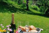 Komfort-Chalet mit Terasse und Garten: liebevoll eingerichtetes Chalet mit einem Schlafzimmer, großzügigem Wohnzimmer mit Schlafcouch, Küche und einem Bad.