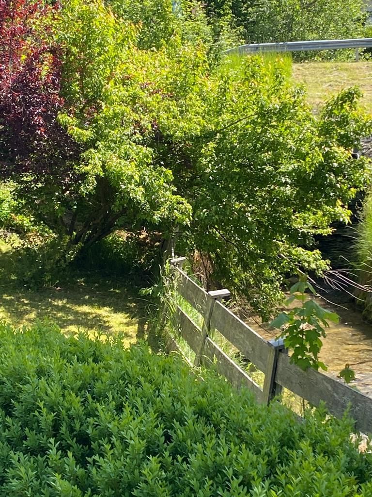 Die Wohnung mit eigenem Eingang ist im Erdgeschoss und hat einen direkten Zugang in den Garten, der an einen Bachlauf grenzt.