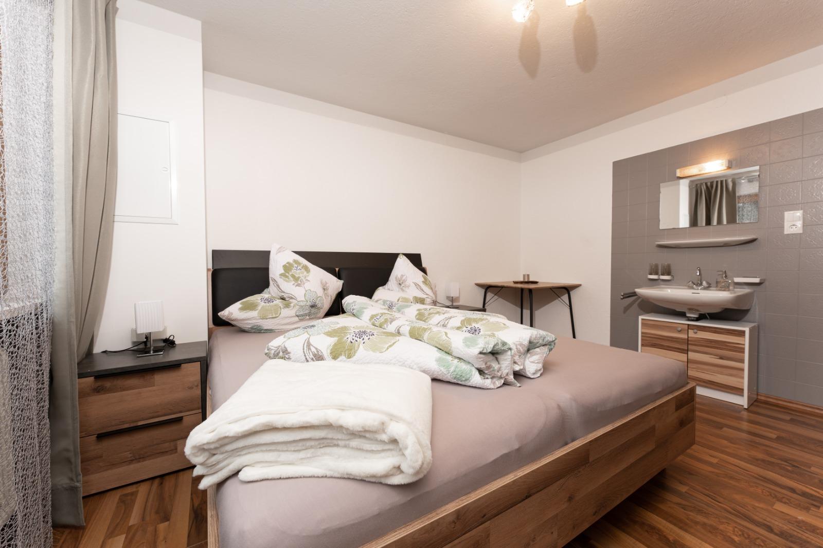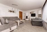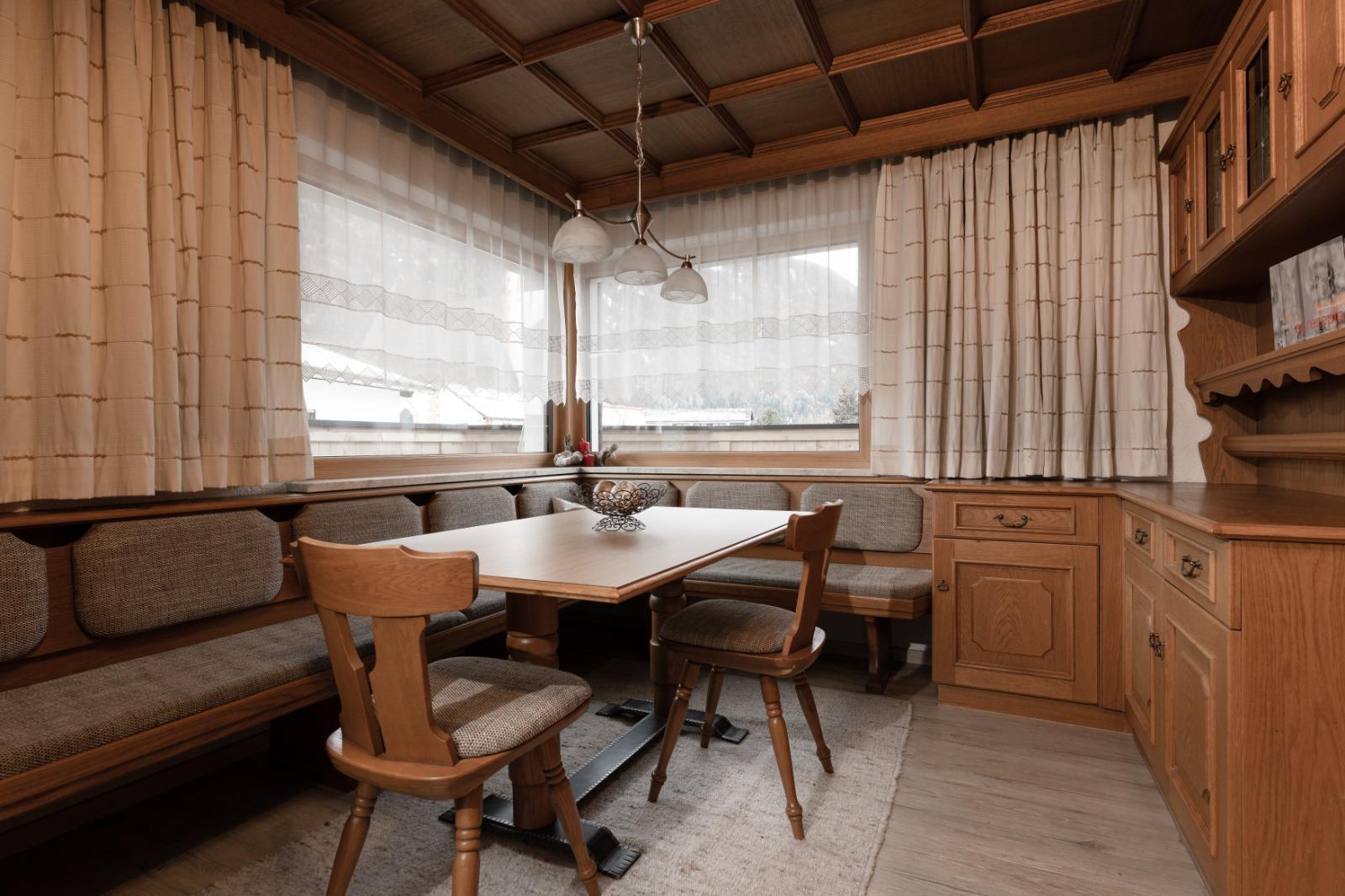 Das Appartement mit ca. 130 m² befindet sich im mittleren Stockwerk und besteht aus: 2 Doppelzimmern mit Waschbecken; 1 Doppelzimmer ohne Waschbecken; 1 komplett ausgestattete Küche mit Spülmaschine, Backrohr, Kühlschrank, Toaster uvm., Essbereich für 5 Personen; 1 gemütliche Stube mit ausziehbarer Couch (Schlafmöglichkeit für 7. Person), Sat-TV, 1 Esszimmer mit Essbereich für bis zu 7 Personen, 1 Badezimmer mit Dusche/WC, Badewanne und Doppelwaschbecken; 1 separates WC; Balkon mit herrlicher Aussicht.