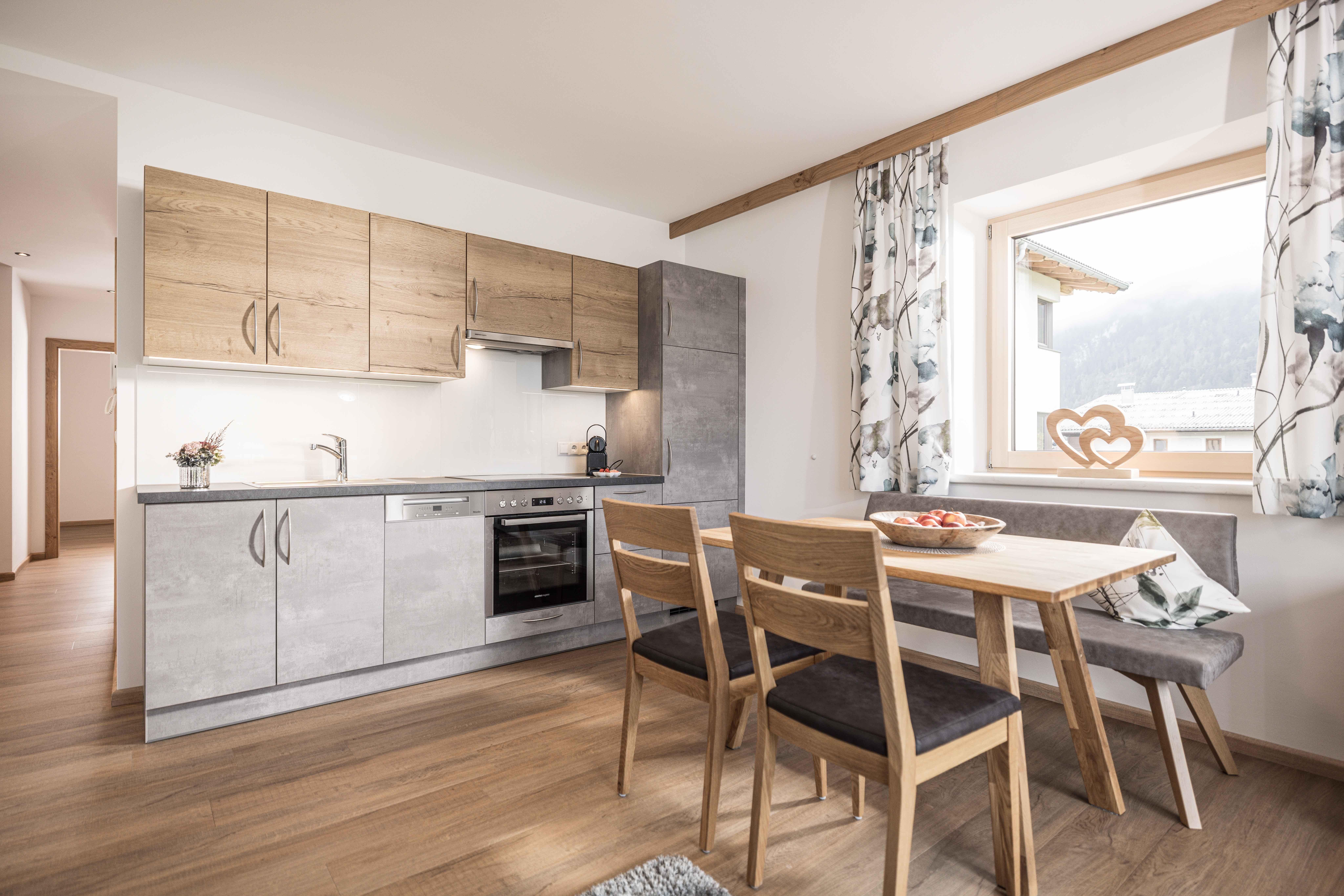 Das Appartement Kraft befindet sich im 3. Obergeschoss (65m2) und bietet Platz für bis zu vier Personen. Das moderne Appartement mit Blick auf den Rattenberger Schlossberg sowie das Inntal verfügt über ein Schlafzimmer mit einem großzügigen Doppelbett sowie einem begehbaren Kleiderschrank und einem Wohn - Essbereich. Die Küche ist voll ausgestattet: Nespresso Maschine, Wasserkocher, Kühlschrank mit Gefrierfach, Backofen, 4- Platten Cerankochfeld, Geschirrspüler, Kochuntensilien und Geschirrtücher. TV Geräte finden Sie im Wohn - Essbereich wie auch in den Schlafzimmern vor. Ebenfalls bietet das Appartement eine gemütliche Essecke sowie ein Ausziehsofa an.