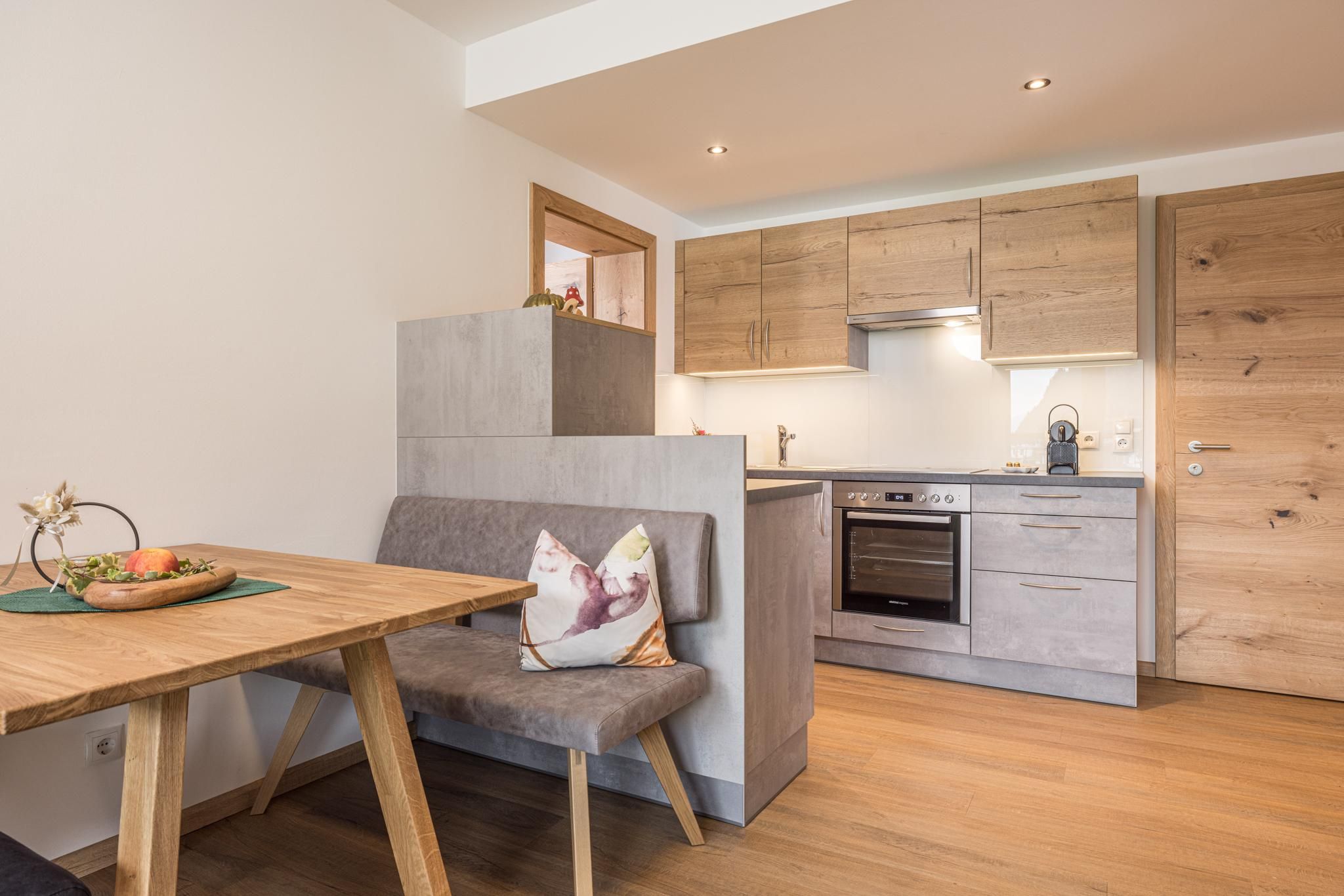 Das Appartement Auszeit befindet sich im 2. Obergeschoss (60m2) und bietet Platz für bis zu vier Personen. Das moderne Appartement mit Blick auf den Rattenberger Schlossberg sowie das Inntal verfügt über zwei getrennte Schlafzimmer mit einem großzügigen Doppelbett sowie einem Stockbett und einem Wohn - Essbereich. Die Küche ist voll ausgestattet: Nespresso Maschine, Wasserkocher, Kühlschrank mit Gefrierfach, Backofen, 4- Platten Cerankochfeld, Geschirrspüler, Kochuntensilien und Geschirrtücher. TV Geräte finden Sie im Wohn - Essbereich wie auch in den Schlafzimmern vor. Ebenfalls bietet das Appartement eine gemütliche Essecke sowie ein Sofa an.