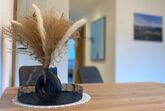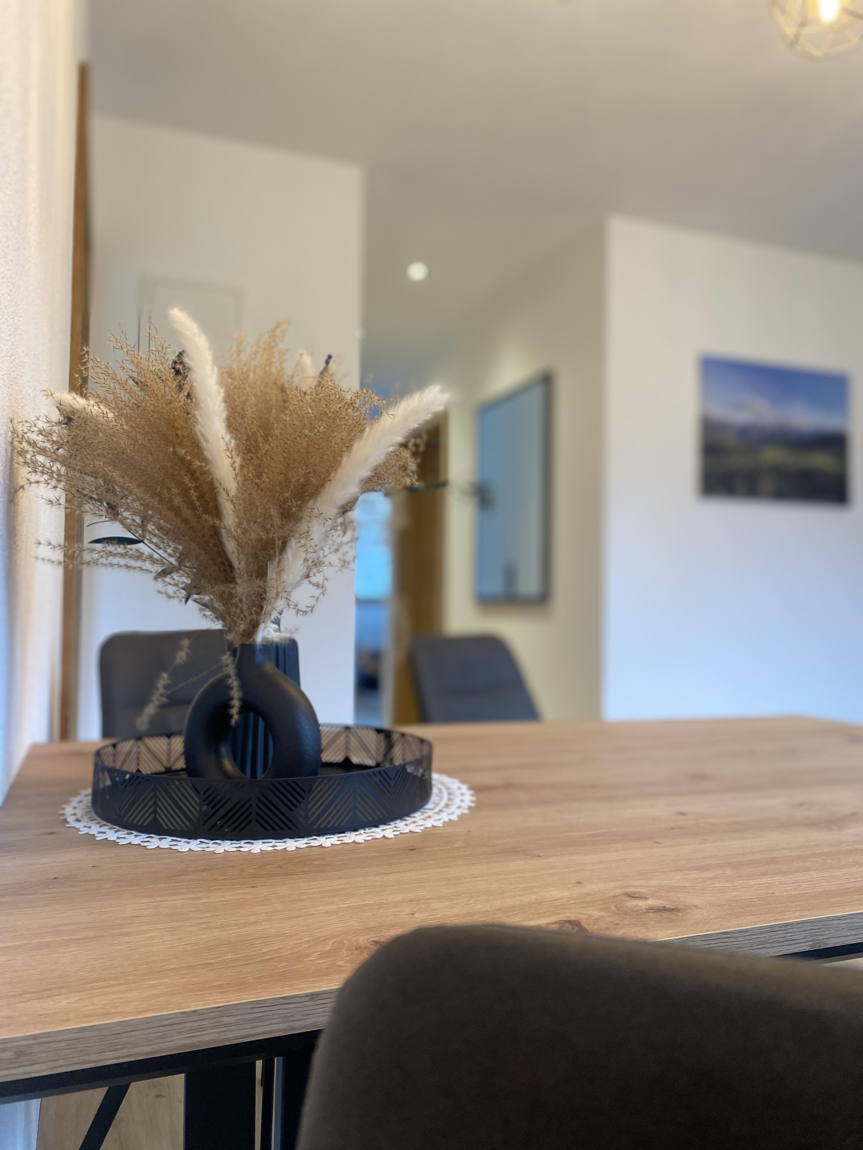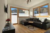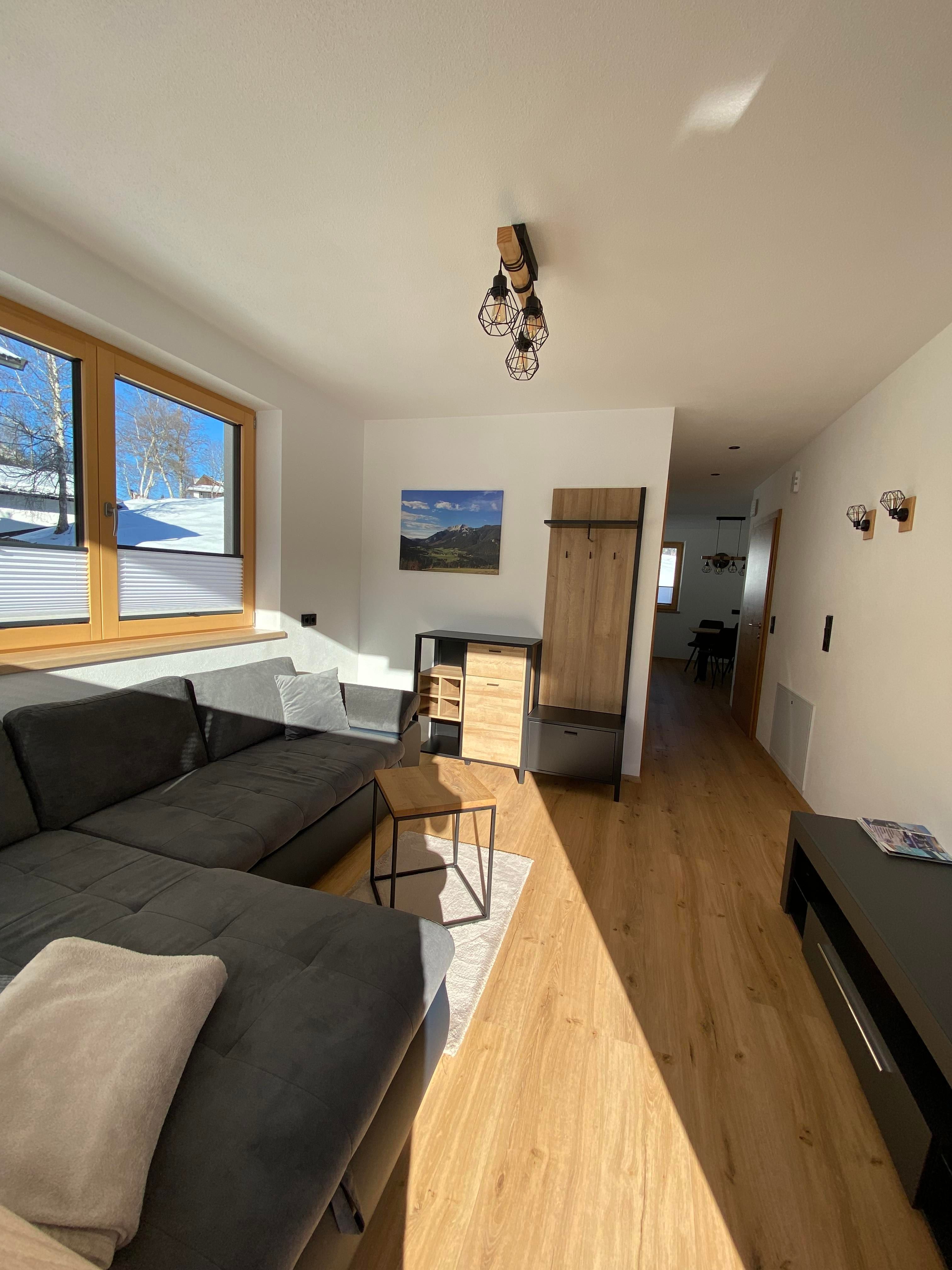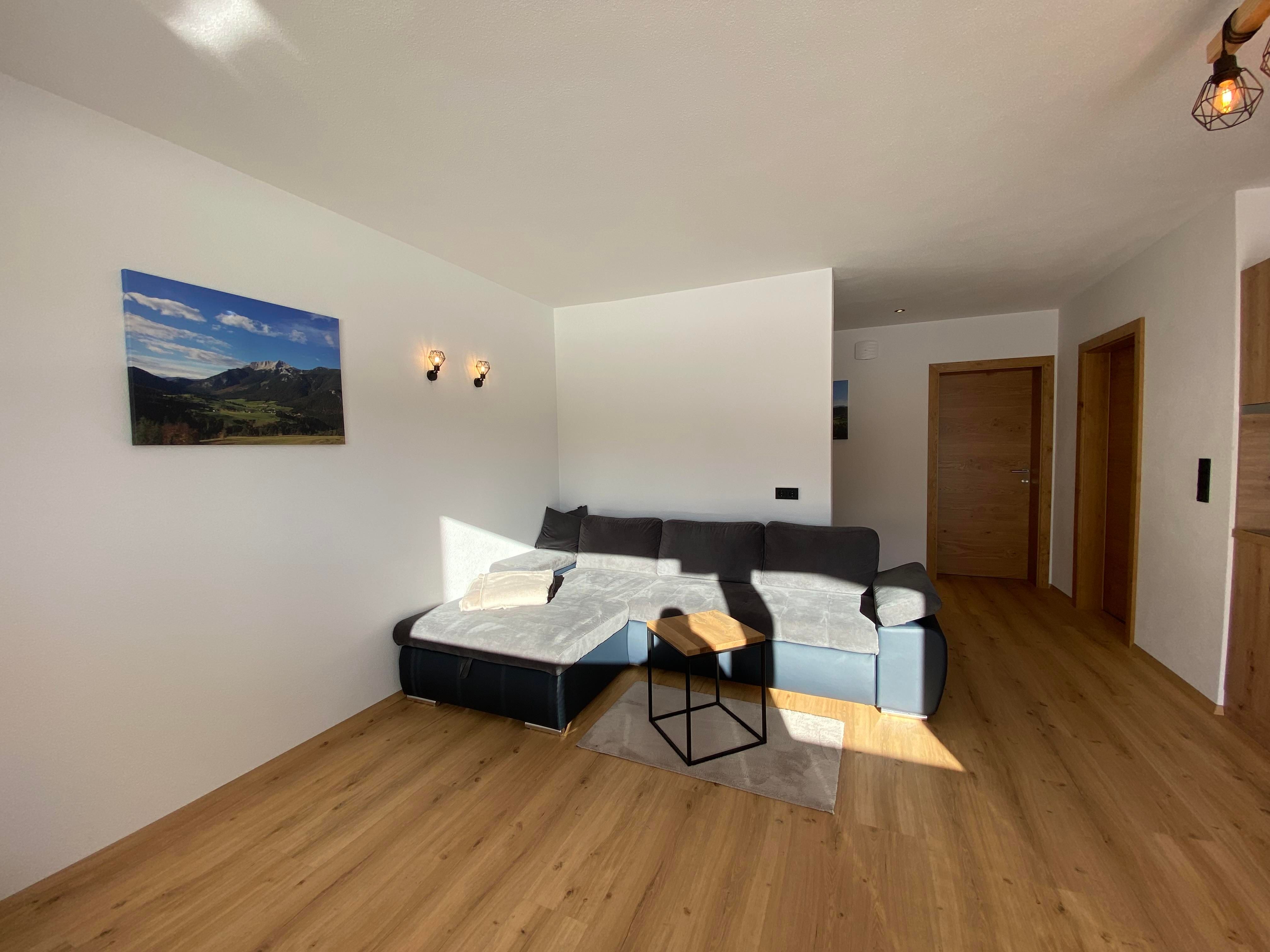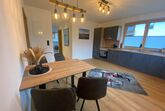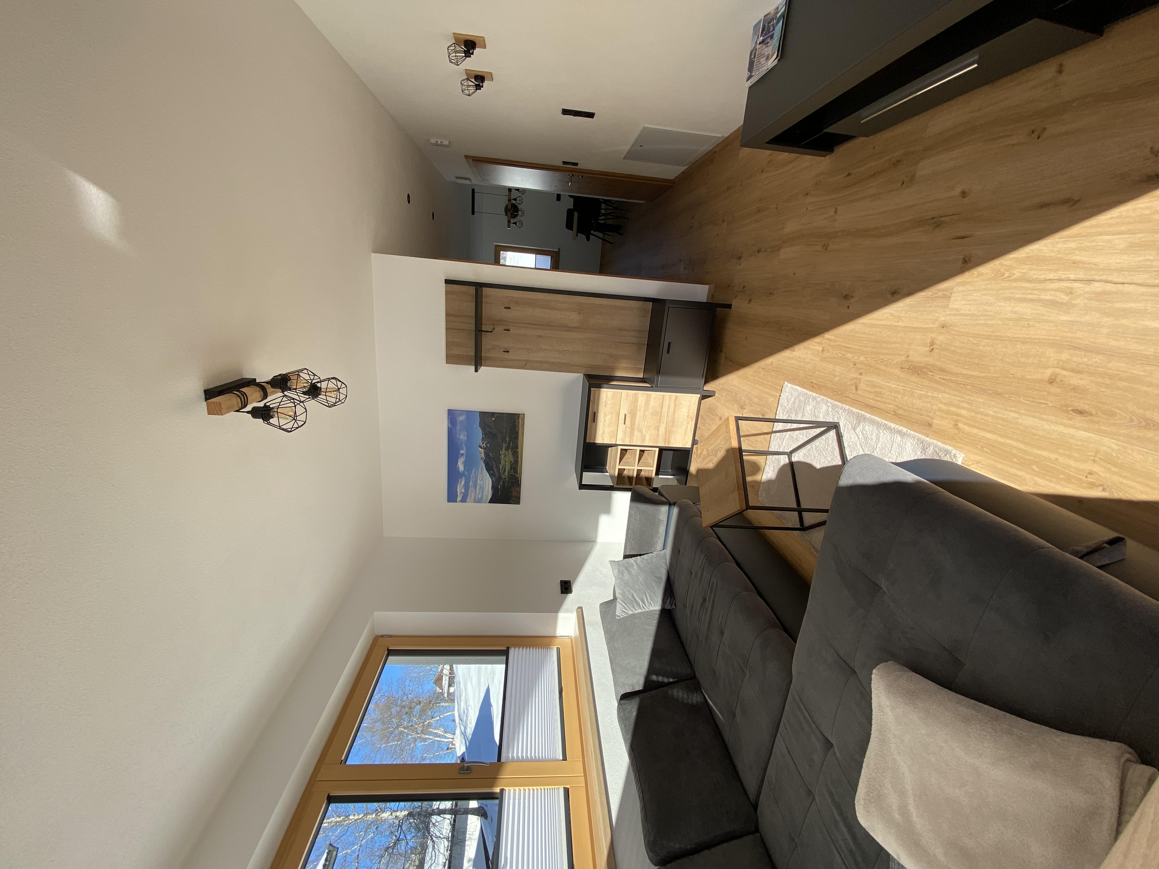 gemütiches Wohnzimmer mit TV, Couch (Schlafmöglichkeit für 2 Personen), kostenloses WLAN, vollausgestattete Küche, Esstisch für 4 Personen,