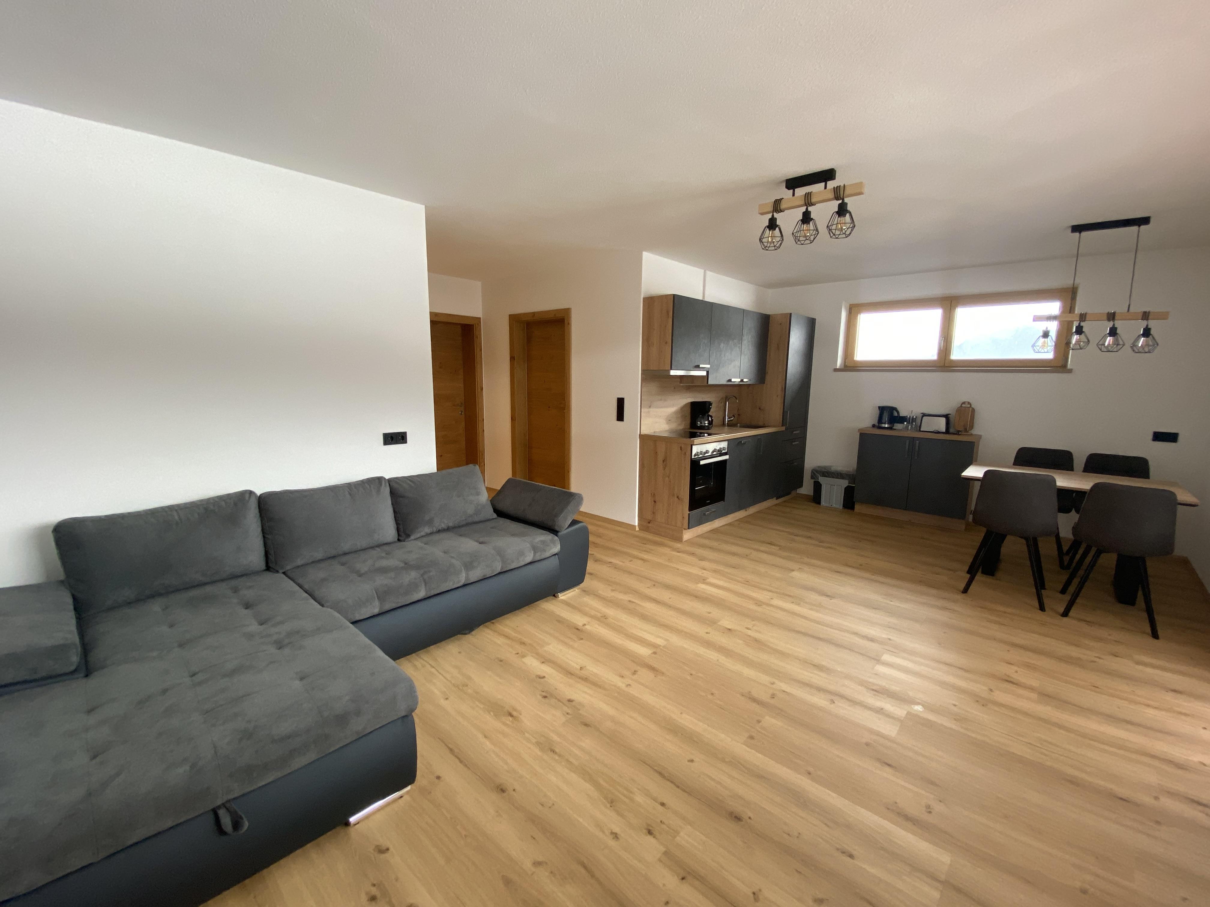 1 Vorraum mit Garderobe, großer gemütlicher Wohnraum mit vollausgestatteter Wohnküche, Couch (Schlafmöglichkeit für 2 Personen), Sat-TV, kostenloses WLAN, Esstisch für 4 Personen,