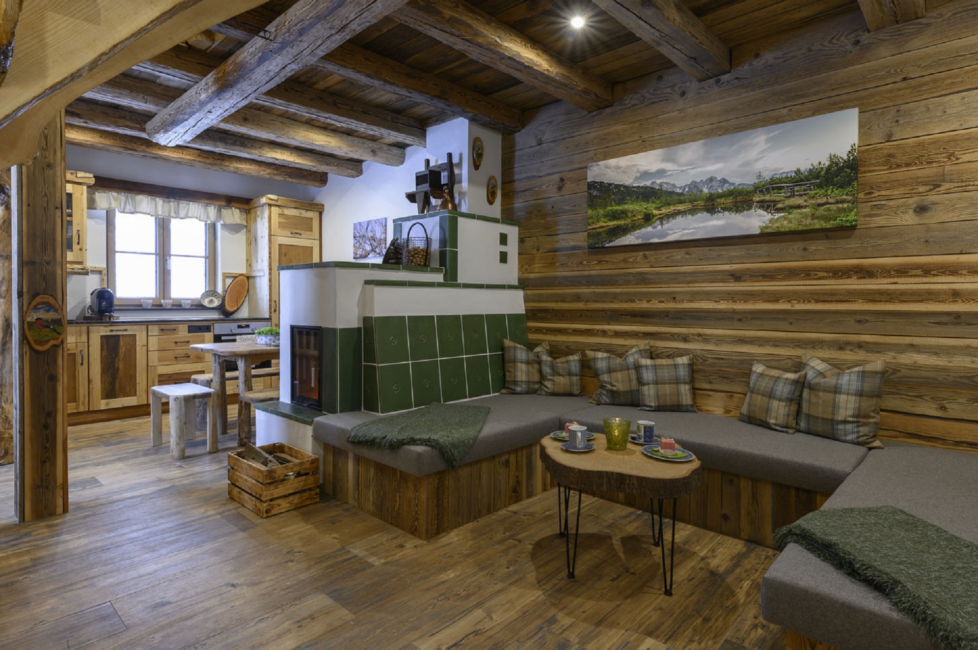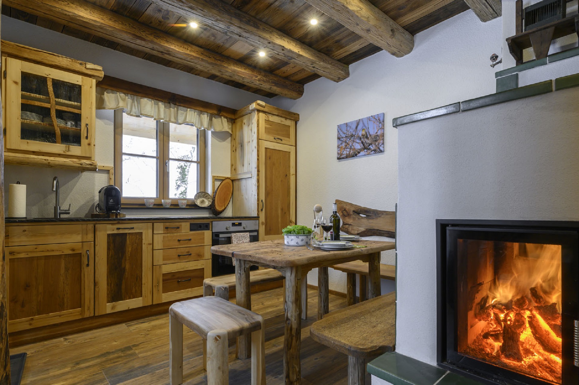 Mit Liebe zum Detail, im typischen Chalet-Stil, urig und trotzdem modern, mit viel Holz und gesetzten Kachelöfen entstand die Ferienwohnung „Voglfonga“ für bis zu 4 Personen.