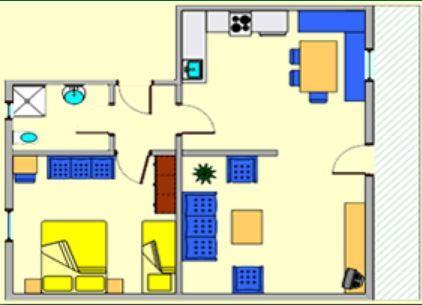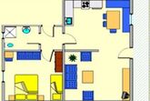 Unser Appartement 1 im Obergeschoss mit ca. 60 m² verfügt über 1 Dreibettzimmer, 1 Badezimmer mit DU/WC, Vorraum und eine Wohnküche (Cerankochfeld, Backrohr, Mikrowelle, Kühlschrank/Gefrierfach, Kaffee-Filter Maschine, Wasserkocher uvm.) mit Essbereich und abgeteiltem Wohnzimmer mit Ausziehsofa, SAT-TV und Balkon.