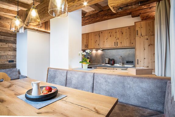 2 Schlafzimmer mit 2 Bäder, Altholzküche mit heimeliger Sitzecke und eigener Balkon