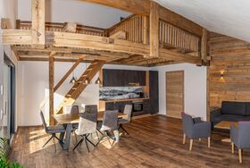 Das Appartement Blick liegt im Dachgeschoss vom Gasthof Gamskar und hat eine Grösse von 90 m².