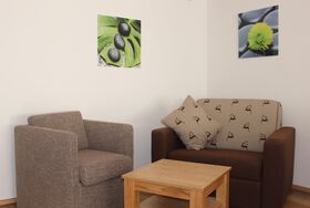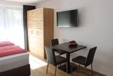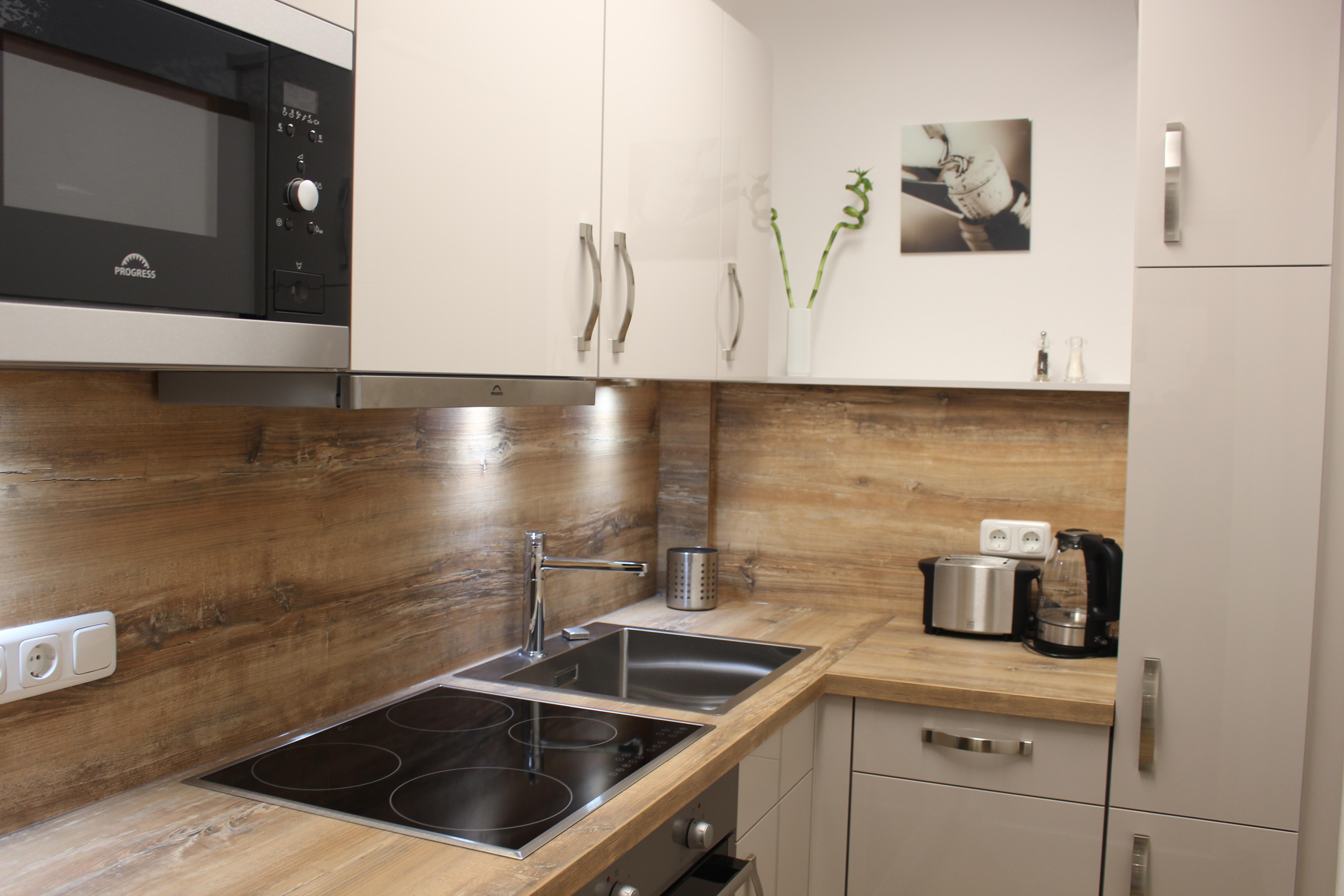vollausgestattete Küche, Badewanne, Flat-screen TV, WLAN, kostenlose Parkplätze, 1 Boxspringbett für 2 Personen, 1 Schlafsofa 1 Person, Esstisch, Balkonmöbel auf der großzügigen Loggia
