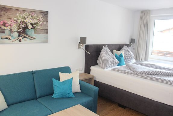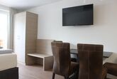 vollausgestattete Küche, Dusche, Hygieneschlauch, Flat-screen TV, WLAN, kostenlose Parkplätze, 1 Boxspringbett für 2 Personen, 1 Schlafsofa 2 Personen, Esstisch, Balkonmöbel auf der großzügigen Loggia