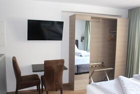 vollausgestattete Küche, Dusche, Hygieneschlauch, Flat-screen TV, WLAN, kostenlose Parkplätze, 1 Boxspringbett für 2 Personen, Esstisch, Balkonmöbel auf der großzügigen Loggia