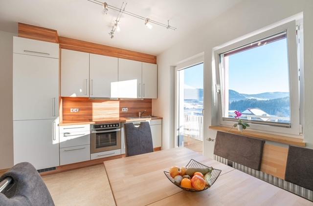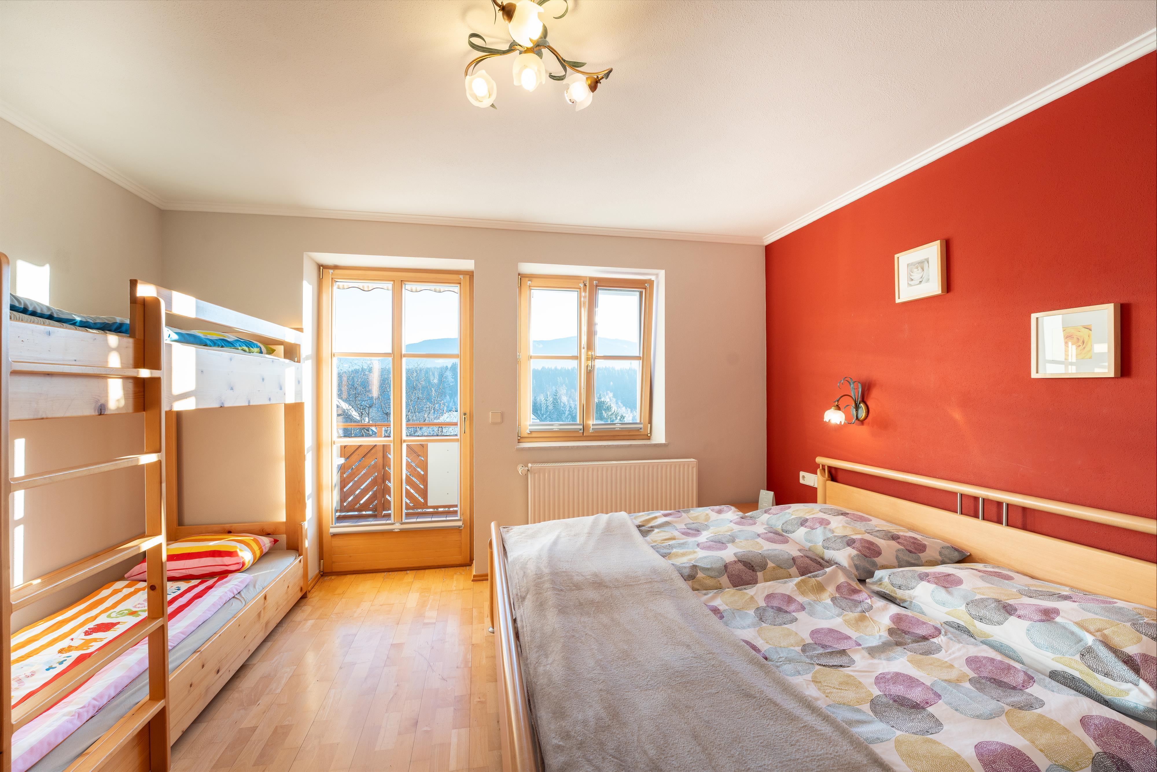 Die gesamte Ferienwohnung ist ca. 70 m² groß und nach Süden ausgerichtet. Sie ist ebenerdig und somit für gehbehinderte Personen besonders gut geeignet. Die Wohnung beinhaltet eine voll eingerichtet Wohnküche (inkl. Geschirrspüler, Wasserkocher, Kaffeemaschine, Mikrowelle, Toaster und sämtlichem Geschirr) Weiters natürlich ein Flat TV inkl. SAT-Anlage und W-LAN. Unsere zwei Doppelbettschlafzimmer sind gemütlich mit jeweils Dusche/WC eingerichtet. Sämtliche Räume haben einen direkten, eigenen Zugang zum Balkon. Auch ein weiters WC befindet sich in der Ferienwohnung.