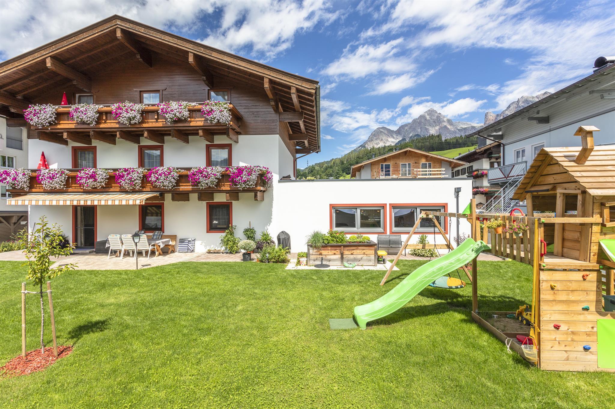 Unser familienfreundliches Haus liegt direkt in der Ortsmitte von Maria Alm, in einer ruhigen Seitenstraße.