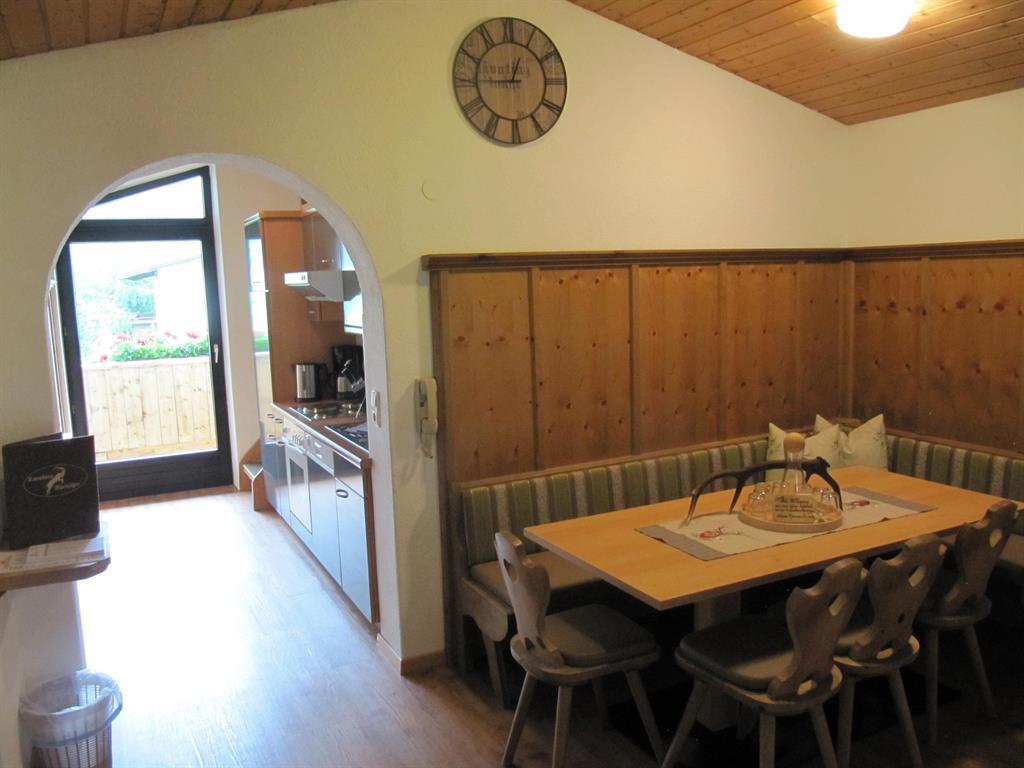 Appartement im Landhaus Stil für 4-7 Personen mit 2 Doppelzimmer und 1 Dreibettzimmer, je mit Dusche/WC oder Bad/WC und Flat-TV. Separate Küche mit Backofen, 4 Herdplatten, Mikrowelle, Spülmaschine, Kühlschrank, Kaffeemaschine, Toaster, Wasserkocher und großem Eßbereich und Balkon.Größe ca. 98 m².