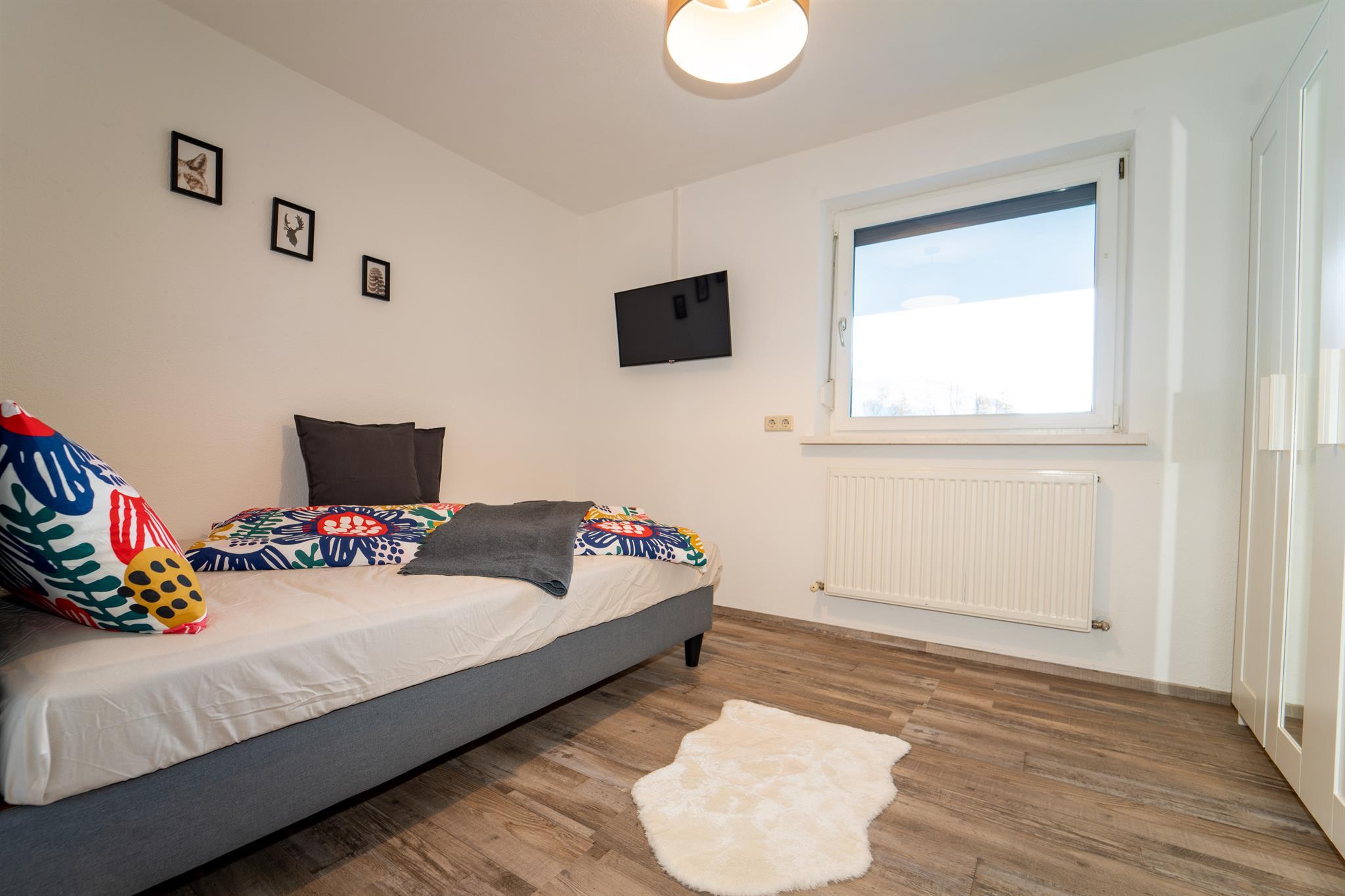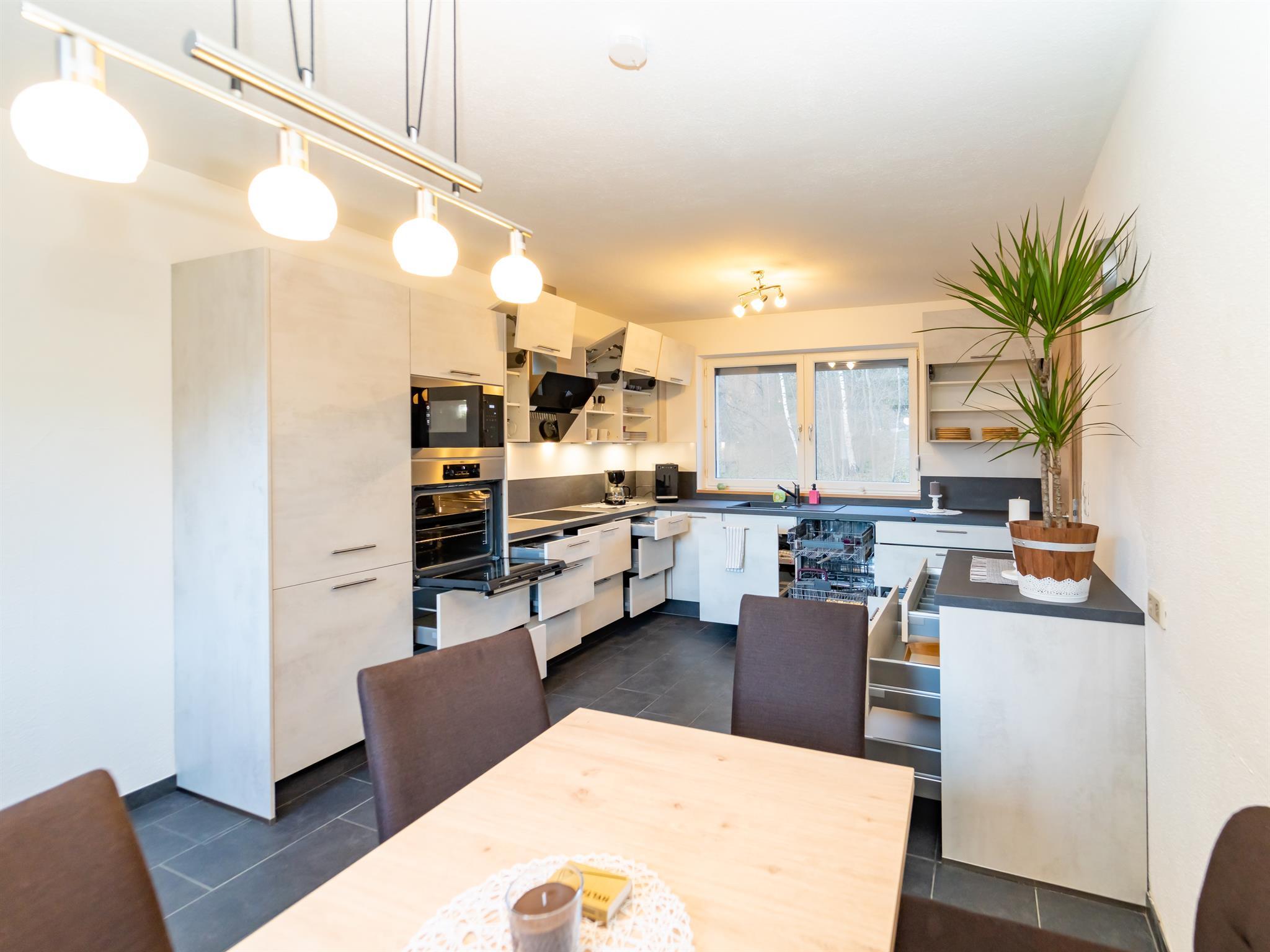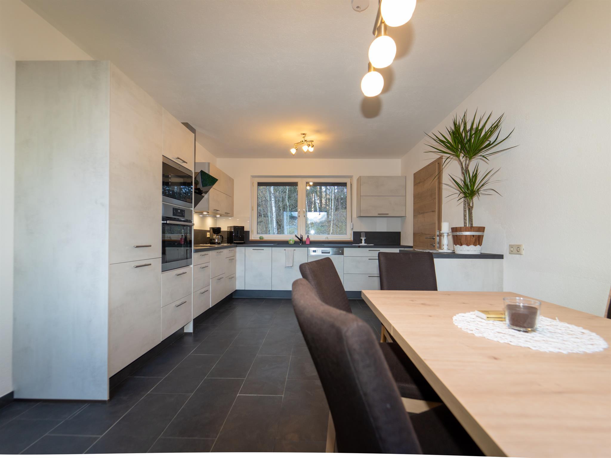 Das Appartement mit ca. 120 m² und eigenem Eingang besteht aus: 3 separaten Schlafzimmern inkl. Sat-TV; 1 komplett ausgestatteten Küche mit Essbereich, Kühlschrank, Mikrowelle, Spülmaschine, Kaffeemaschine inkl. Kaffeebohnen für den Start; uvm.; 1 Wohnzimmer mit Kachelofen (beheizbar) und Sat-TV; 1 Badezimmer mit Dusche und Badewanne und WC; 1 separates WC; Zugang zur möblierten Terrasse u. Garten;