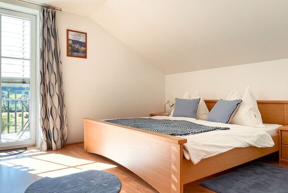 Die Doppelzimmer sind mit TV, Balkon und Dusche/WC ausgestattet. Sie genießen einen fantastischen Blick zum Irrsee.