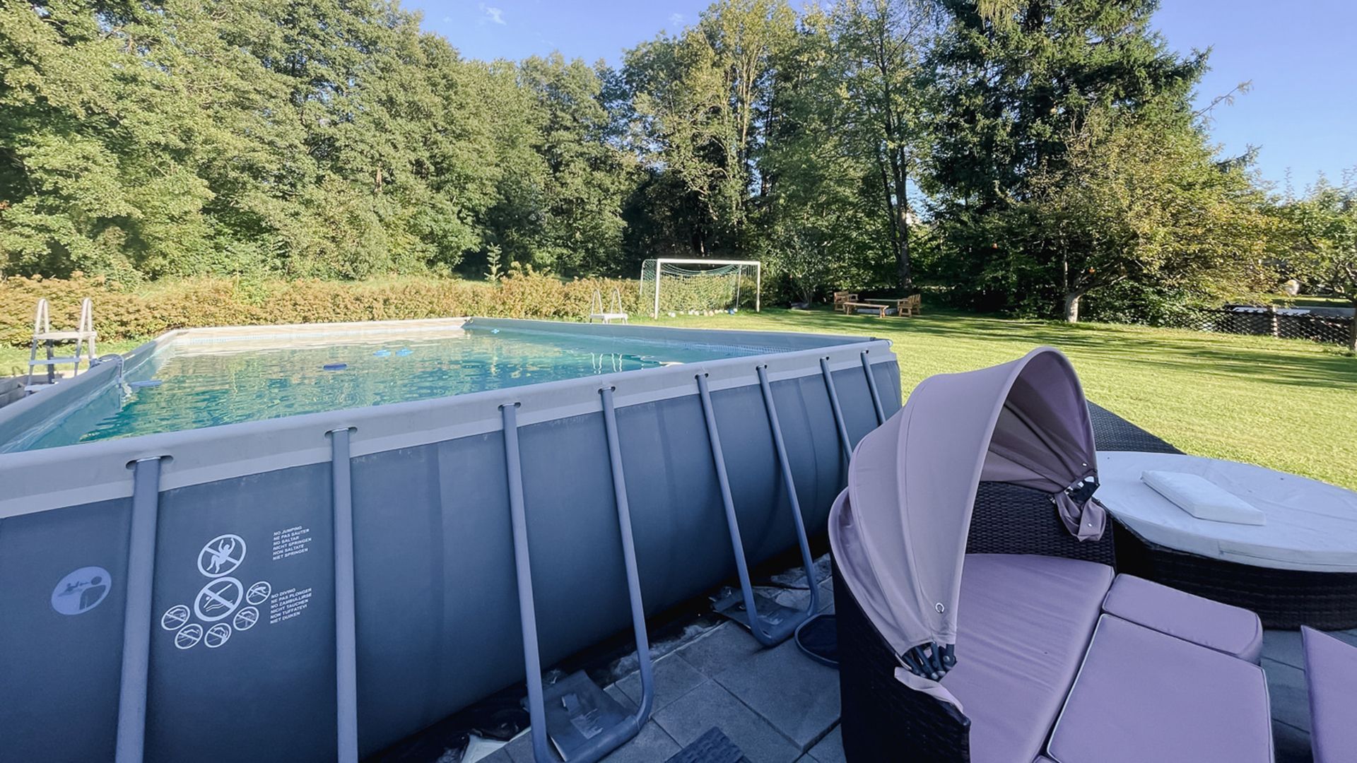 In unserem großen Garten können Ihre Kinder nach Herzenslust spielen und herumtoben. Unser Pool im Garten (10x4m) können Sie täglich in der Zeit von 09:00 bis 19:00 Uhr auf eigene Gefahr benutzen.