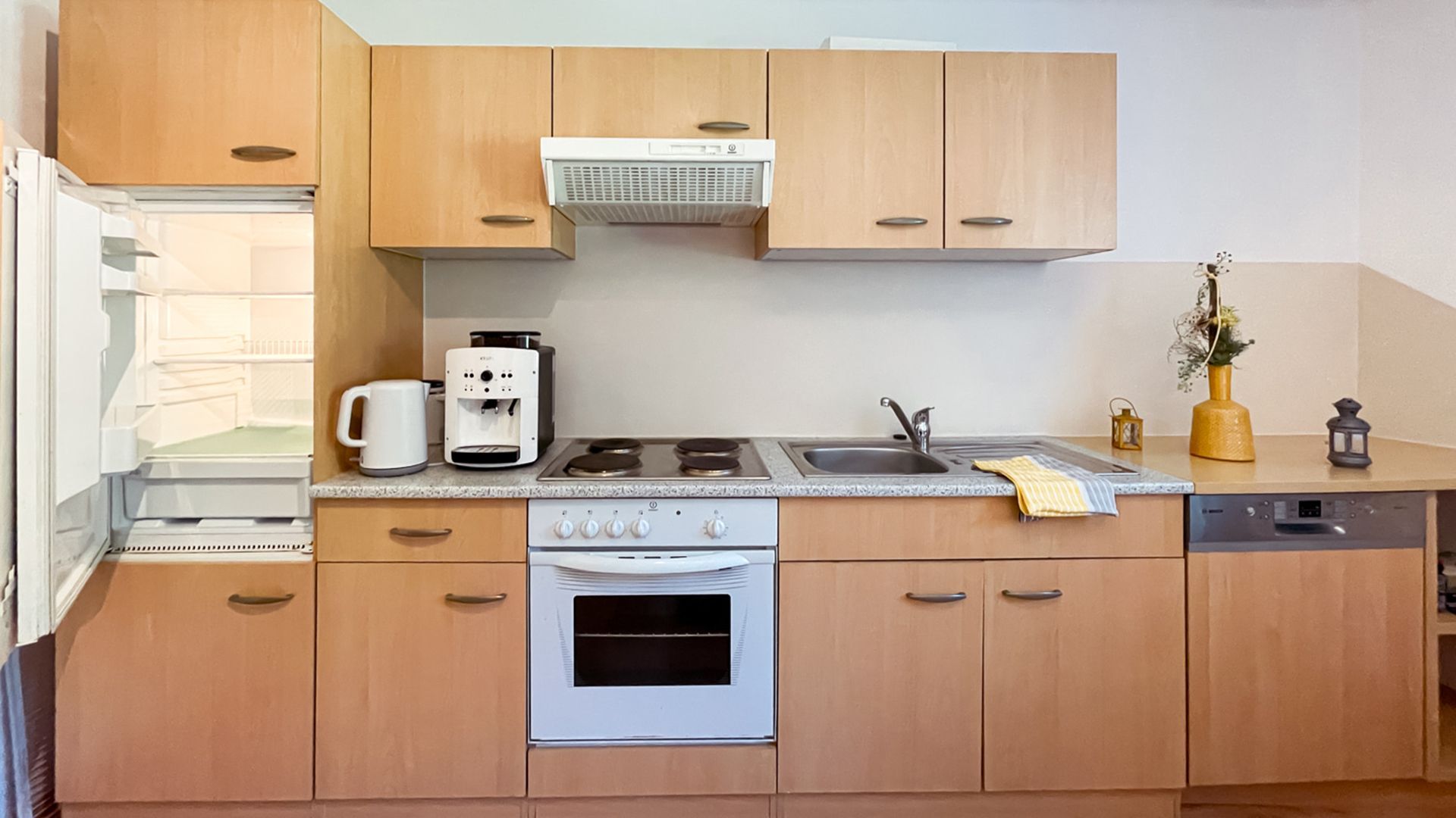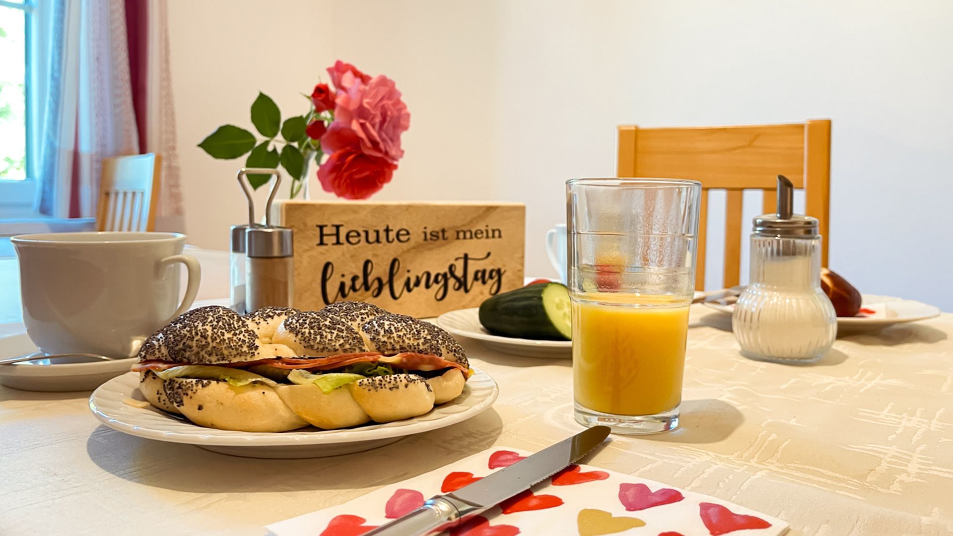 Wir bieten unseren Gästen Zimmer ohne Frühstück an, mit dem Angebot das Frühstück selber in der Gästeküche zuzubereiten. Die Küche ist mit einer Kaffeemaschine, einem Wasserkocher, sämtlichem Geschirr und einem Geschirrspüler ausgestattet.