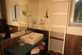 Gegenüber ist ein geräumiges neues Badezimmer mit Dusche/WC, Fön und Kosmetikspiegel.