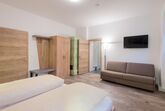 ein Schlafzimmer mit Doppelbett, ein Schlafzimmer mit Doppelbett und Doppelcouch.