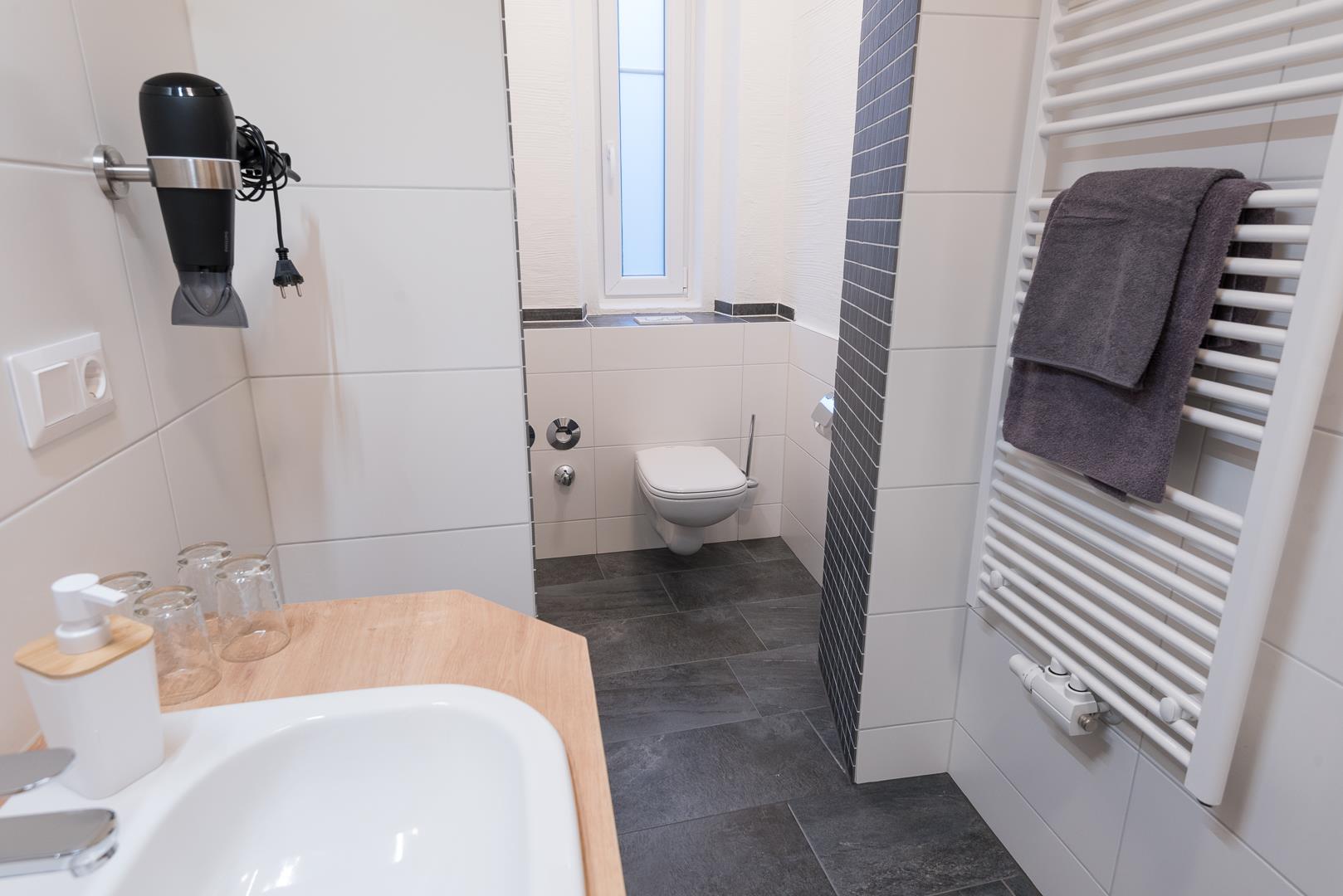 Badezimmer mit Dusche und WC für jedes Schlafzimmer extra.