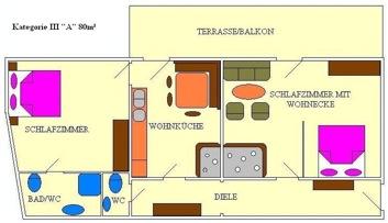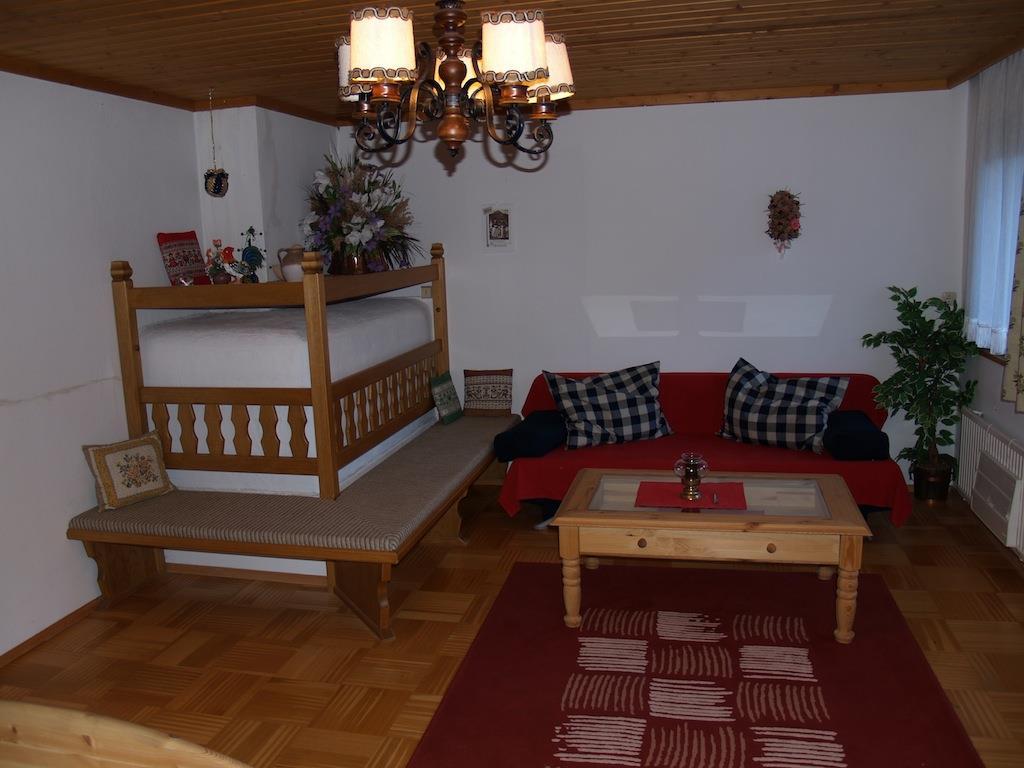 Ferienwohnung „A“ (Franz) mit zwei Schlafzimmern ca. 80m² Gemütliche Ferienwohnung mit Kachelofen, Balkon, zwei Schlafzimmern, eine große Wohnküche mit Spülmaschine, E-Herd, Backofen, Kühl/Gefrierkombination, Kaffeemaschine. TV/Sat, zwei WC, ein Badezimmer/Dusche;
