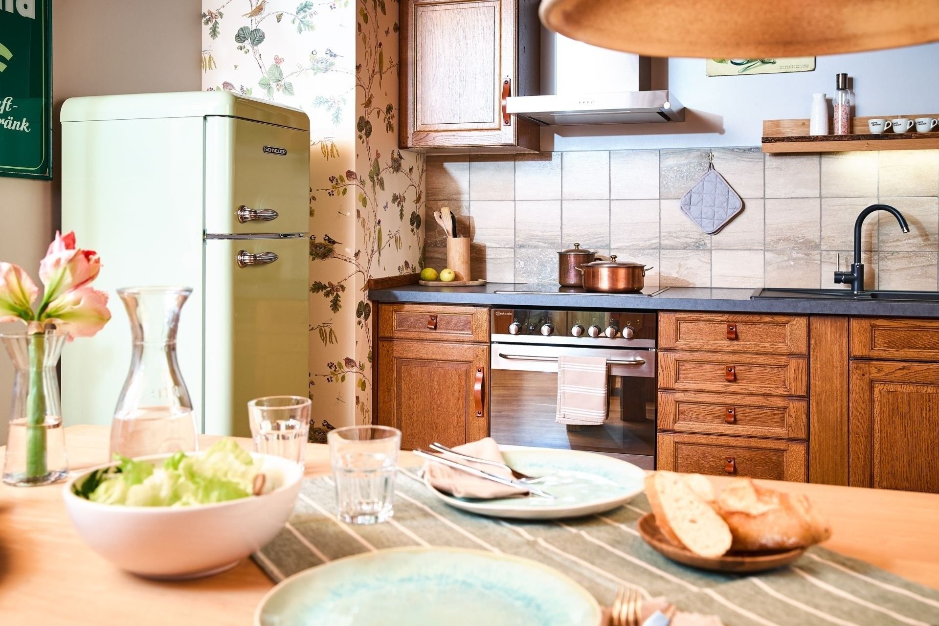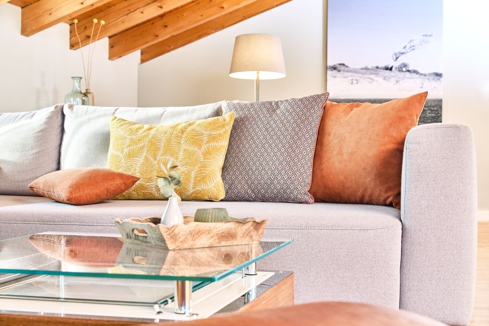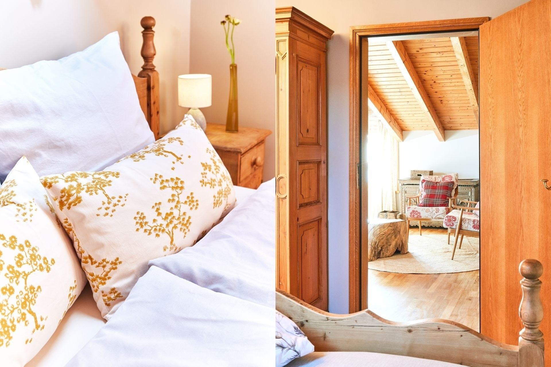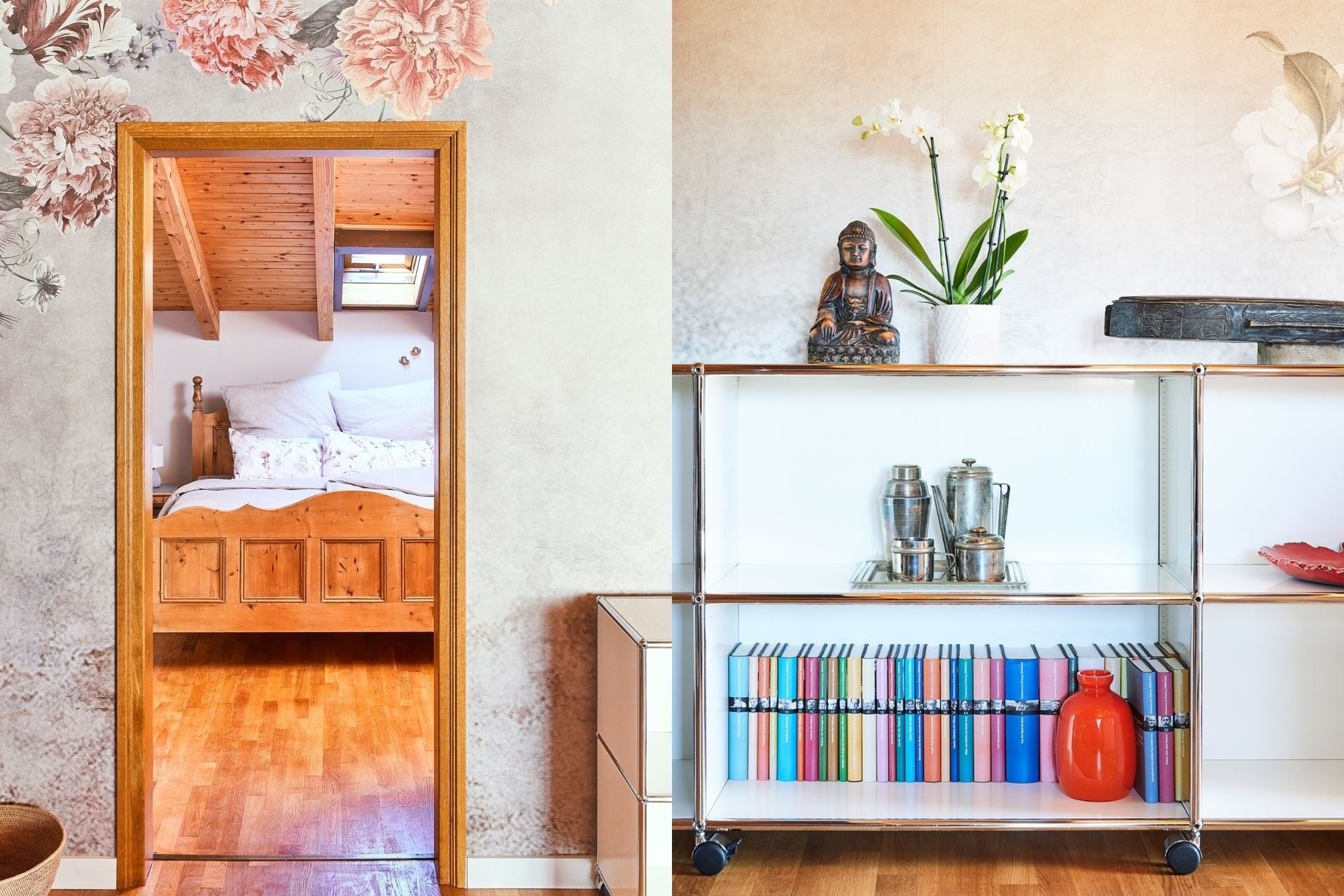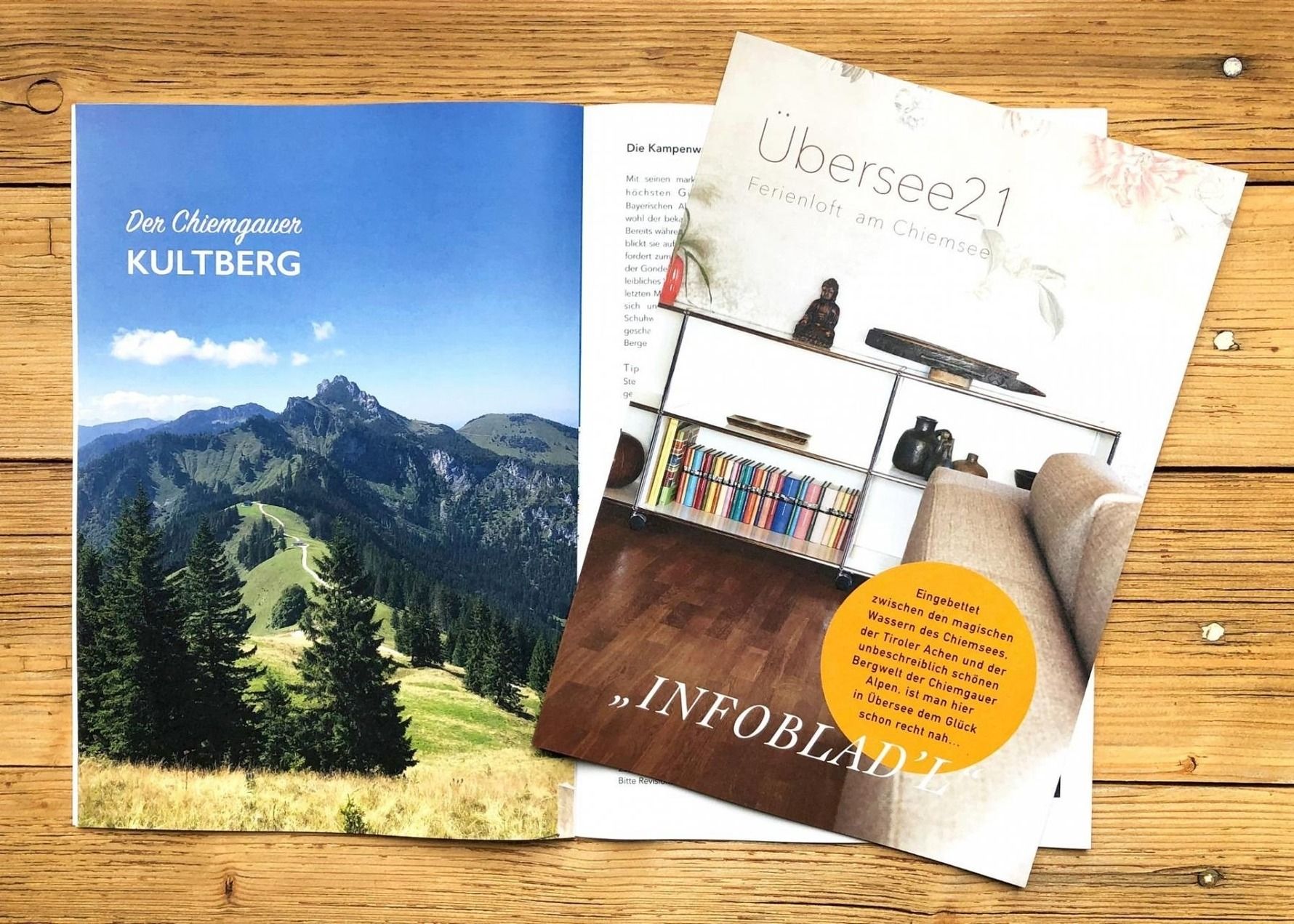 Die unverwechselbare Einrichtung im modernen Cottage-Stil und die komfortable Ausstattung sowie die gute Erreichbarkeit von See, Wander- und Radrouten und der nahegelegene Ausflugsziele macht das 4*Ferienloft Übersee21 zum idealen Ort für Paare, die Erholung suchen, sich eine Auszeit gönnen, einen Aktivurlaub planen oder sich ganz der Kultur hingeben wollen.Die gepflegte ca. 75 m² große DG-Ferienwohnung befindet sich im 1. Stock eines Zweifamilienhauses in einem Wohngebiet, ausserhalb der Ortsmitte des Luftkurortes Übersee und wenige Minuten vom Chiemsee entfernt. Die liebevolle Einrichtung im modernen Cottage-Stil besticht durch die kreative Zweckentfremdung origineller und hochwertiger Gegenstände für den Alltagsgebrauch. Jede Ecke erzählt eine r großzügige Wohnraum mit bequemen Sofa-Chaiselounge-Kombination und Leseecke wird durch die außergewöhnliche Pfingstrosen-Tapete stilvoll abrundet. Das Regal mit der kleinen Bibliothek aus Büchern und Magazinen lädt zum Stöbern ein.In dem offenen Wohn-Essbereich befindet sich auch die gut ausgestattete Küche mit hochwertigen Küchenutensilien und Kaffeemaschine. Der große massive Holztisch mittendrin lädt zum gemeinsamen Essen, für Unterhaltungen oder auch zum Arbeiten ein.Genießen Sie die Morgensonne auf dem wettergeschützten, großzügigen Süd-Balkon mit Blick auf die Chiemgauer Alpen und beginnen Sie den Tag mit einem entspannten Frühstück.Das separate Schlafzimmer gewährt liegend einen Blick in den oberbayerischen Sternenhimmel mit Option auf Sternschnuppen oder Verdunkelung für erholsamen Schlaf! Massivholzböden in allen Wohnräumen, außer im Badezimmer und Flur, runden die hochwertige Innenausstattung ab.Umgebung: Die gut ausgebaute Infrastruktur des Luftkurorts Übersee verfügt über einen Bahnhof /Autobahnanschluß mit direkter Verbindung nach Salzburg und München, div. Ärzte, Apotheke, Supermärkte, Bioladen, Bäckereien, Restaurants ect... Zum See und Hafen, dem Strandbad inkl. Strandbar mit sandigem Badestrand, einem Hochseilparcour, Kanu - und SUP Verleih, Restaurants, Kiosks ect. gelangen Sie fußläufig, per Fahrrad oder auch mit dem PKW.Bitte beachten Sie: Die Ferienwohnung ist für Babys und Kinder ungeeignet | Es handelt sich um eine Nichtraucherwohnung, das Rauchen ist im gesamten Haus und Aussenbereich nicht gestattet | Tiere können leider nicht mitgebracht werden | Keine Drogen/Partys/DatingWir freuen uns darauf, Sie schon bald als unsere Gäste begrüßen zu dürfen!