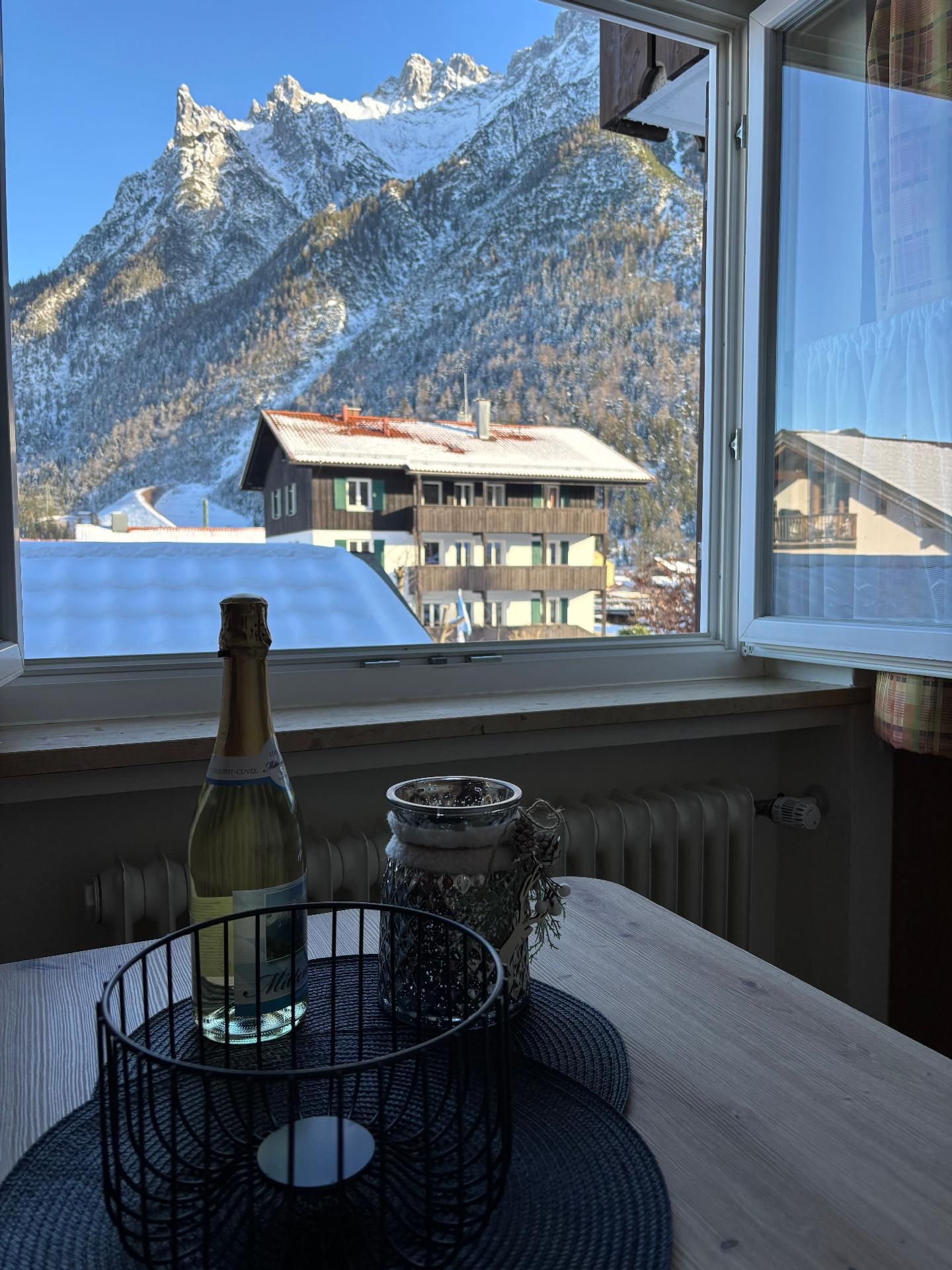 Das Highlight: der möblierte Süd-Balkon mit traumhaftem Blick aufs Karwendel. Perfekt für Frühstück mit Aussicht oder einem entspannten Abend.