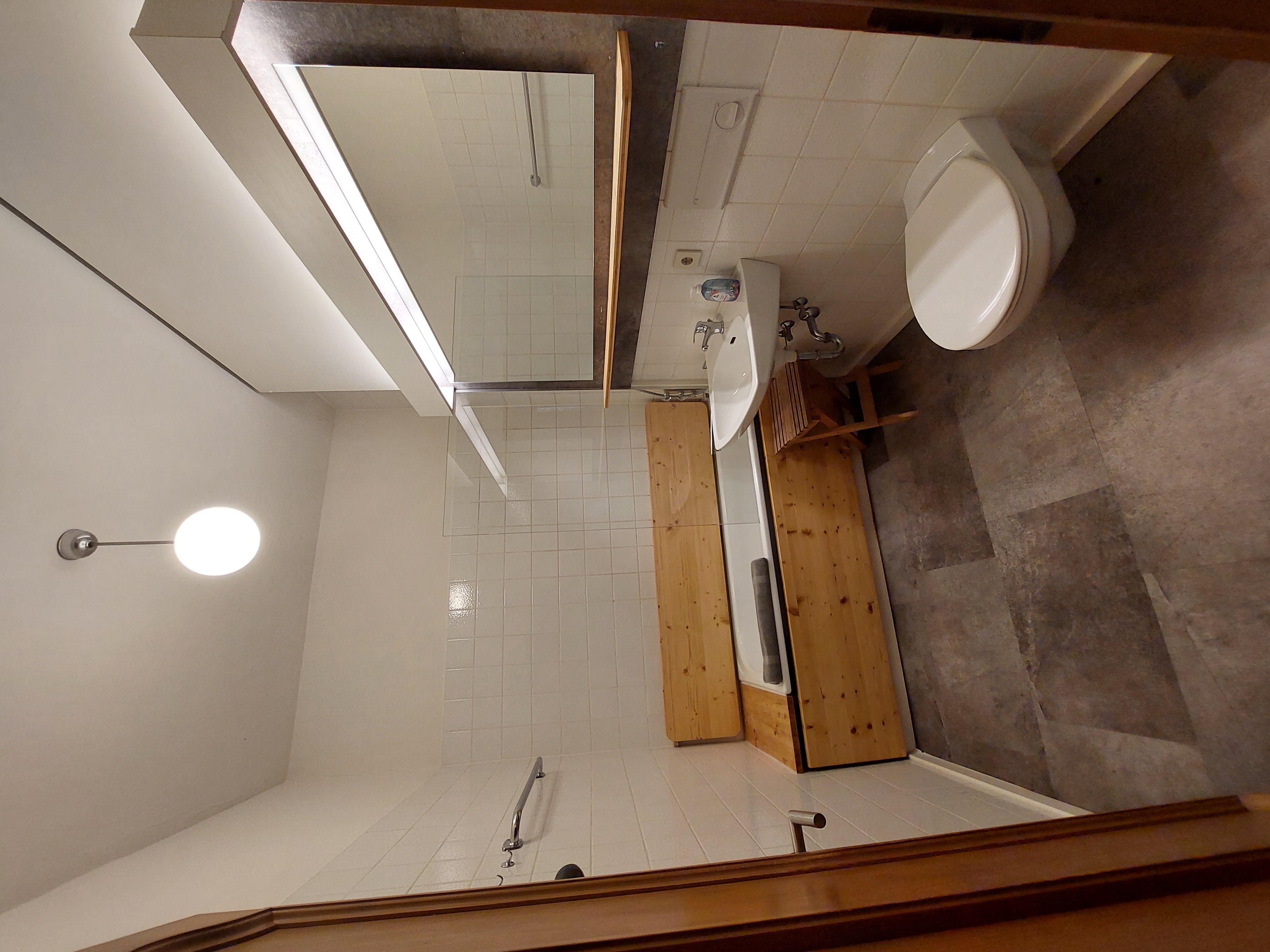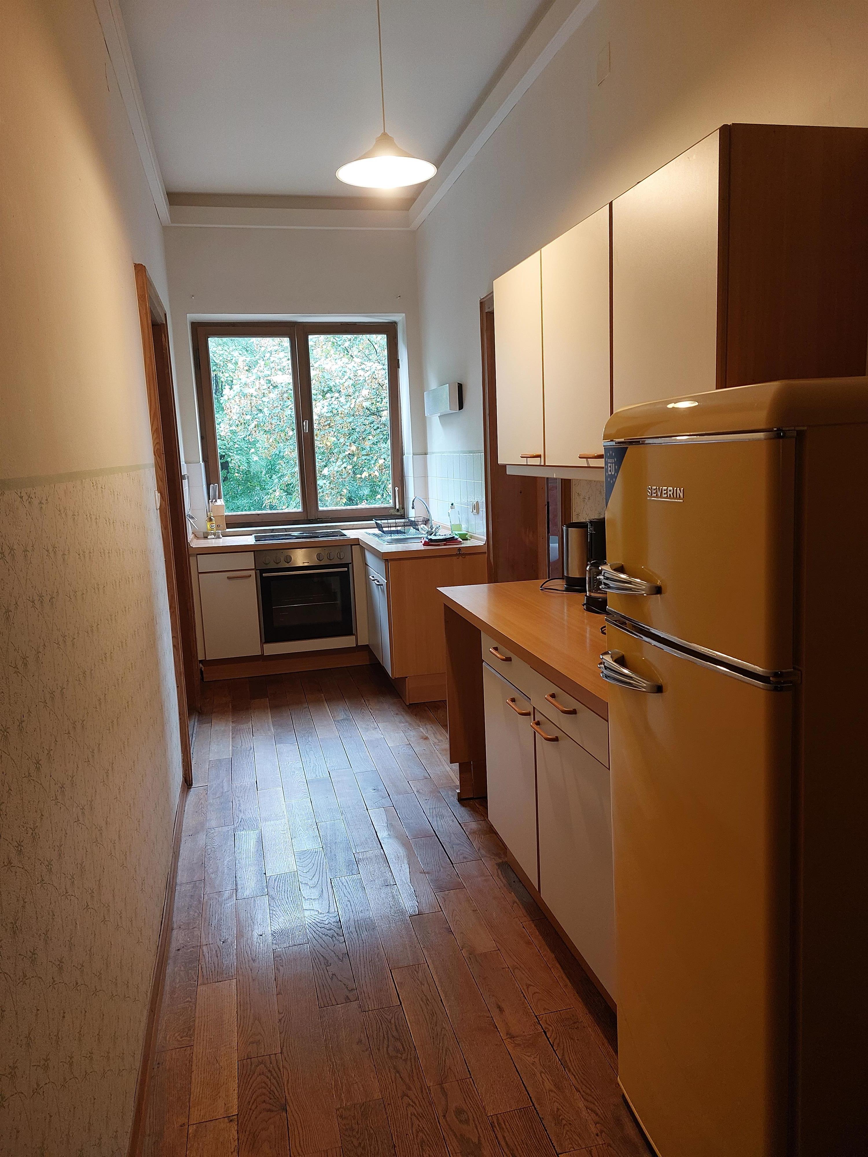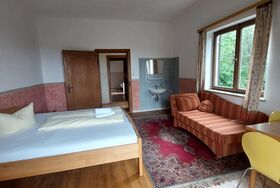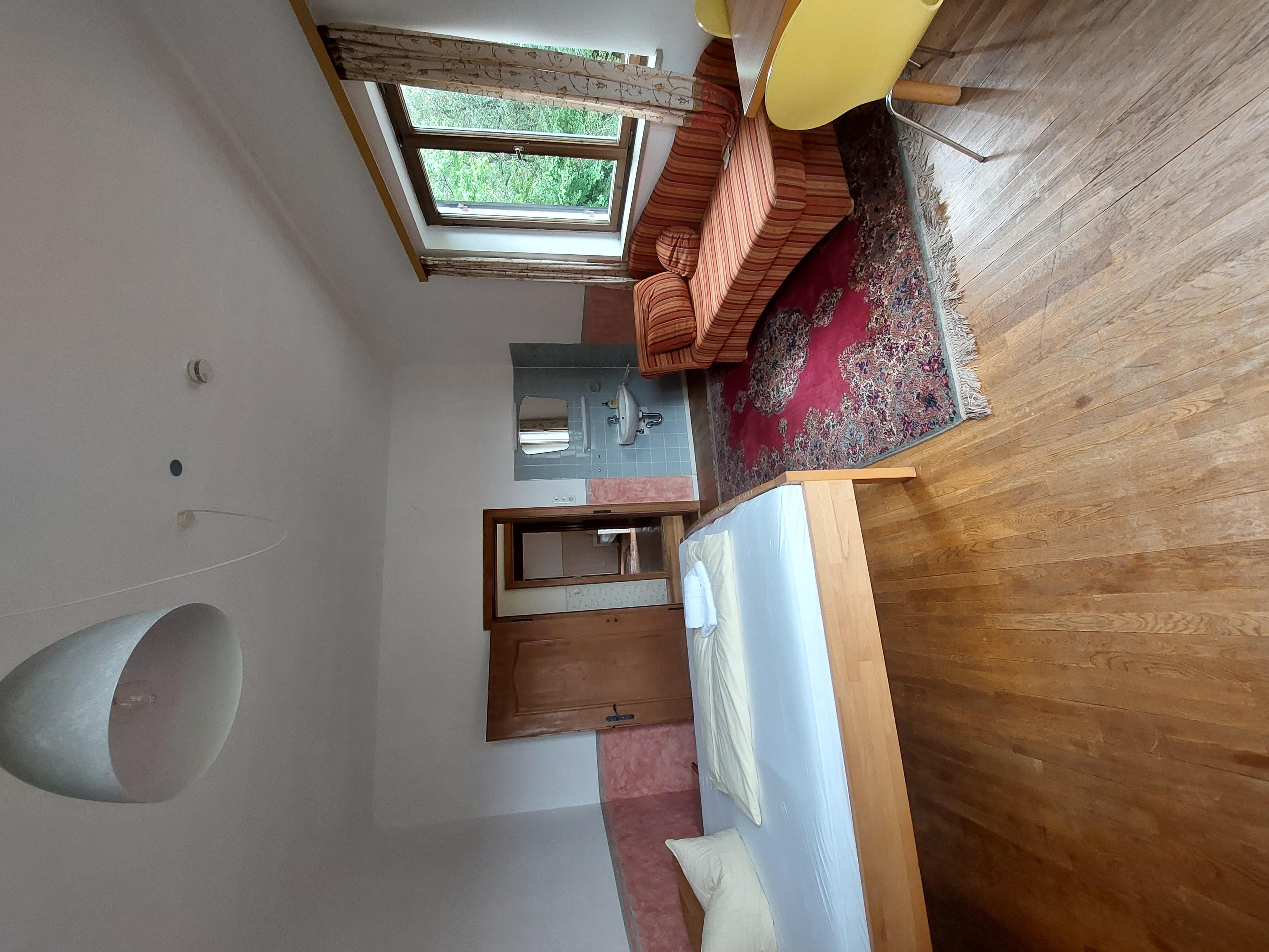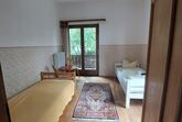 Die Ferienwohnung teilt sich in 2 Schlafräume auf. Ein kleiner Flur mit integrierter Küchenzeile verbindet die Räume und das zentral gelegene Badezimmer. Beide Zimmer verfügen über Zugang zu den Balkonen. Die Einrichtung ist einfach und funktionstüchtig. Die Gäste können die Räumlichkeiten im Erdgeschoss (Gastraum und Weinstube) mit nutzen.