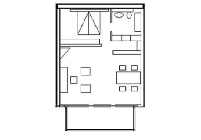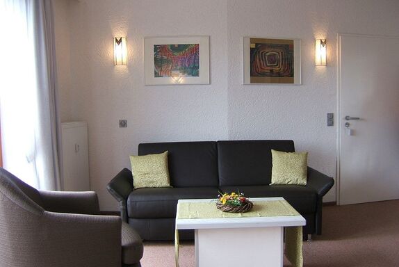 Das 2-Zimmer Appartement ist modern und komfortabel eingerichtet (47 qm, Südbalkon, für max. 4 Personen). Eine bis zum Giebel verlaufende Decke gibt ein sehr angenehmes Raumgefühl. Dadurch ist die Trennwand zwischen Wohn- u. Schlafzimmer im oberen Teil nicht vollständig geschlossen.