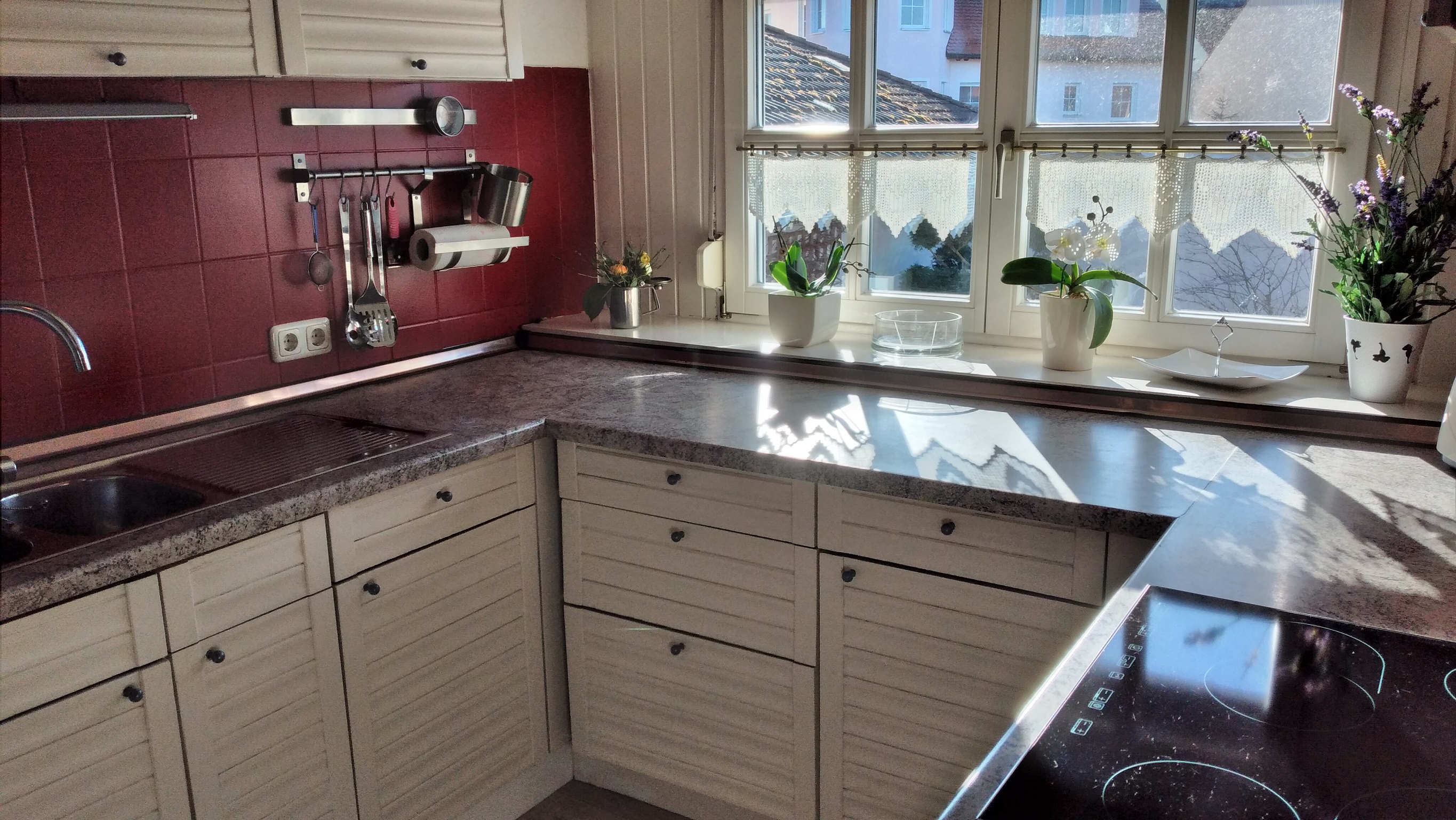 Die Küche ist voll ausgestattet. Spülmaschine, sowie mit Kaffeemaschine und Wasserkocher.