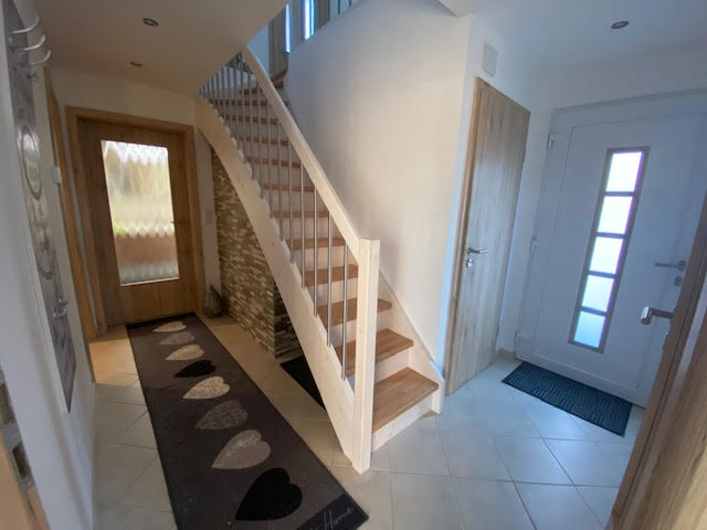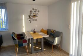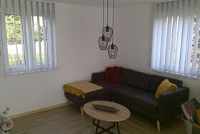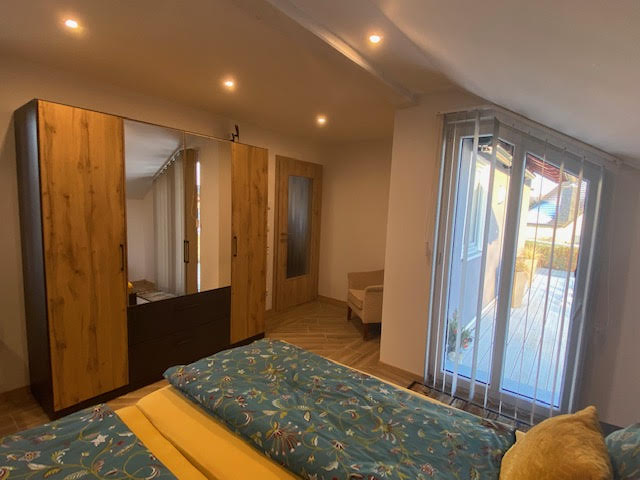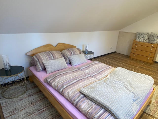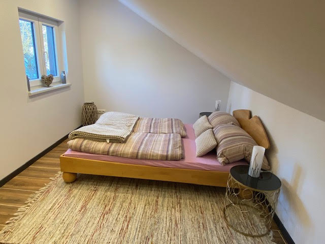 Die Ferienwohnung (65qm) erstreckt sich über zwei Ebenen (Erdgeschoss + Dachgeschoss) und bietet Platz für bis zu 3 Personen. Die Wohnung verfügt über 2 Schlafzimmer mit jeweils einem Doppelbett. Das Doppelbett in dem einen Schlafzimmer ist 1,80x2,00m, das Doppelbett im zweiten Zimmer 1,40x2,00m. Die Fußenden der Betten sind offen. Handtücher und Bettwäsche sind vorhanden. Die Küche ist voll ausgestattet und verfügt unter anderem über einen Backofen, einen Geschirrspüler, einen Kühlschrank sowie eine Kaffeemaschine. Das Badezimmer verfügt über ein WC sowie eine Dusche und ein Waschbecken. In der Wohnung darf nicht geraucht werden. Ein Parkplatz steht zur Verfügung. Wlan kann kostenfrei genutzt werden.