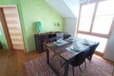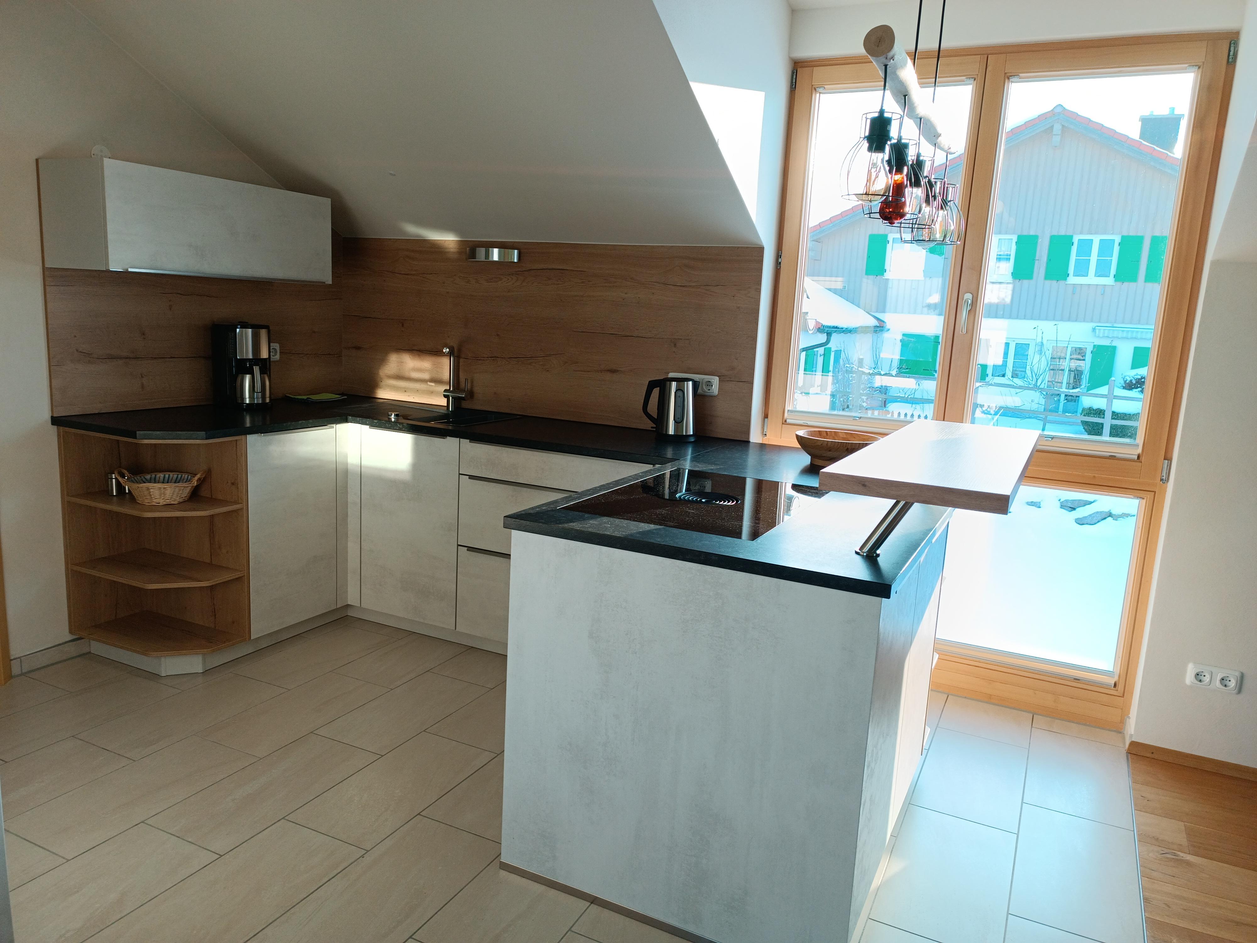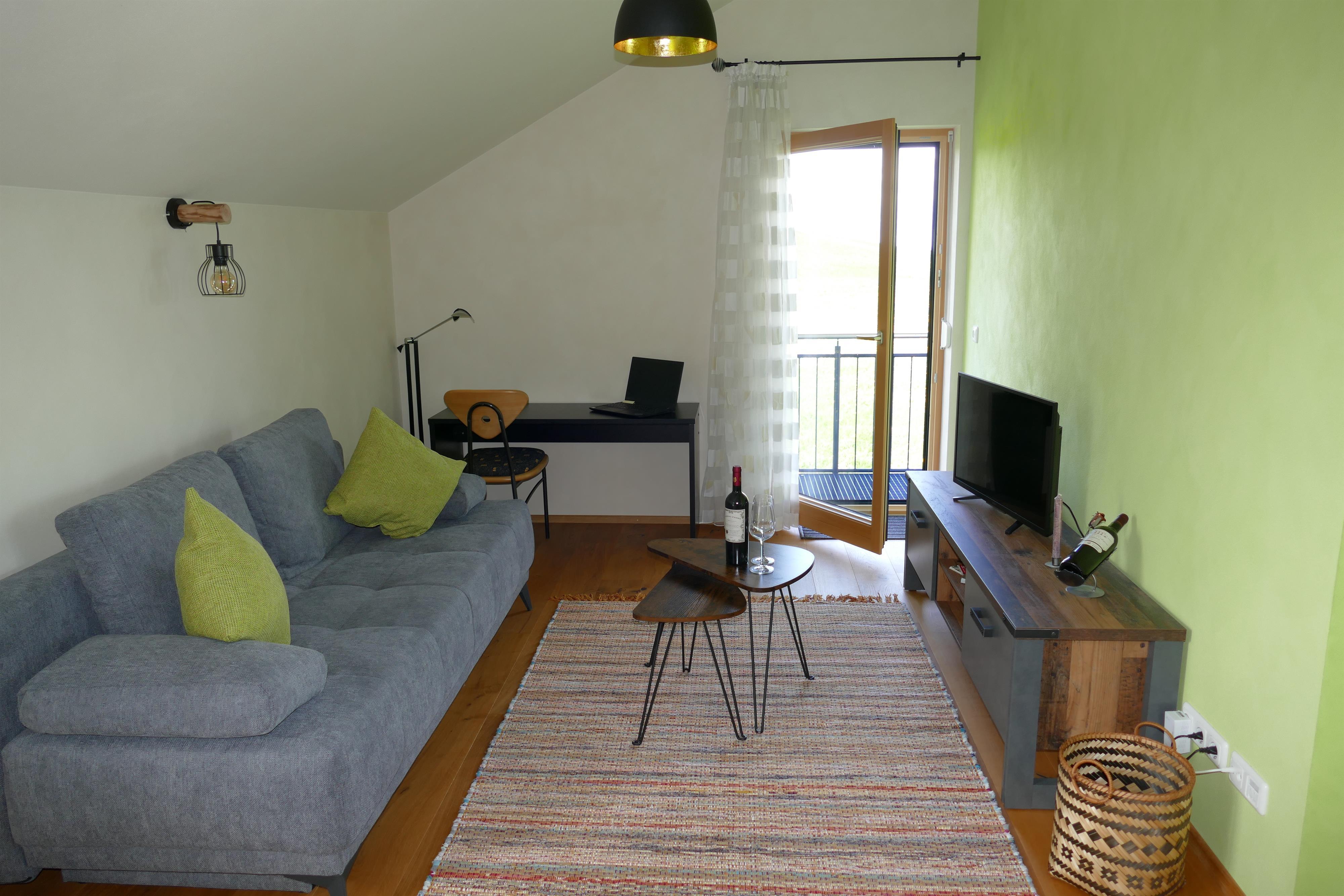 Unsere neue Ferienwohnung mit 55m² Wohnfläche liegt im 1. OG, ist über einen separaten Eingang zu erreichen und bietet Platz für bis zu 4 Personen. Der gemütliche Wohnbereich mit Schlafsofa, Smart-TV sowie optional einem Zustellbett für die vierte Person lädt zum Verweilen ein. Die komplett ausgestattete Einbauküche mit Induktionsherd, Backofen, Kühlschrank inkl. Gefrierfach, Kaffeemaschine, Wasserkocher und Toaster lässt keine Wünsche offen. Ihre Mahlzeiten genießen sie im hellen, angrenzenden Essbereich. Die Ferienwohnung verfügt über 1 separates Schlafzimmer mit einem Doppelbett. Das Badezimmer mit Fenster verfügt über eine ebenerdige Dusche mit Regenbrause, Badewanne, einen großen Spiegel und einem Heizkörper zur Handtuchtrocknung. Vom Wohnbereich und vom Schlafzimmer erreichen Sie ihren eigenen Balkon. An warmen Sommertagen genießen Sie dort die herrliche Abendsonne. Das WLAN und den Parkplatz vor dem Haus können Sie kostenfrei nutzen. Ihr Elektroauto laden Sie gegen Gebühr bequem an unserer hauseigenen Typ2 Wallbox (11kW).