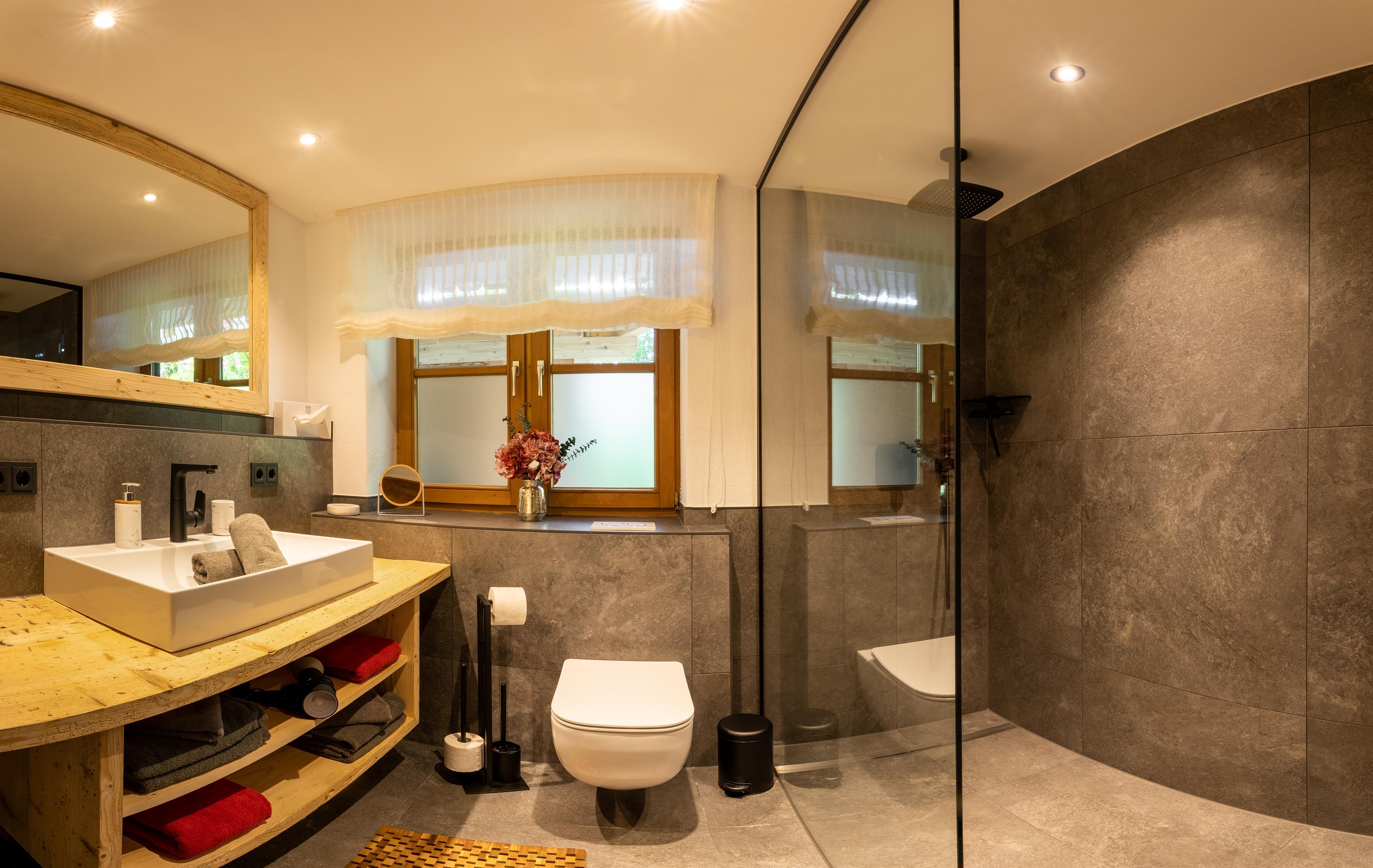 Badezimmer mit Dusche/WC, Föhn, Badeutensilien